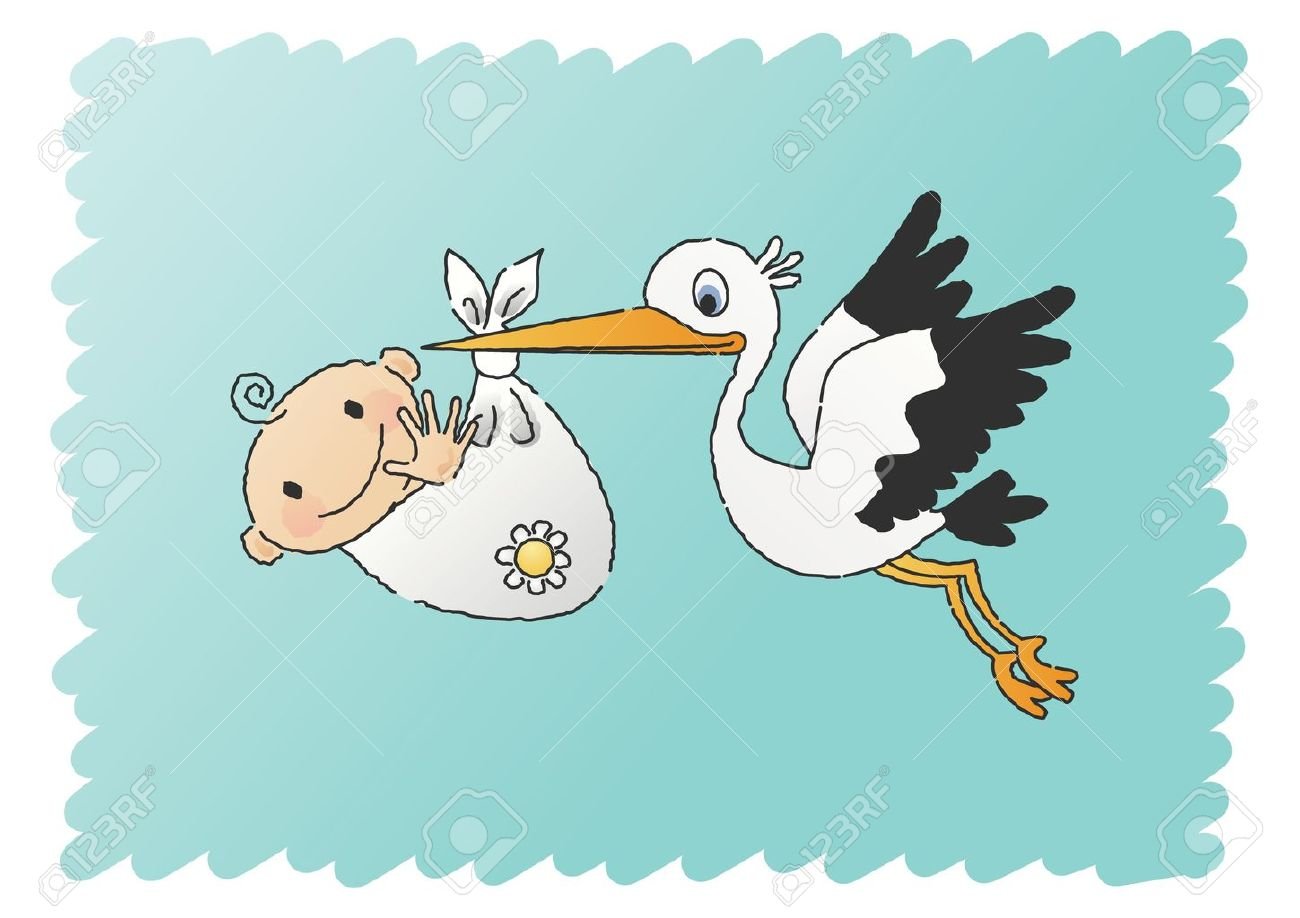 ![Мультяшные Аист с младенцем]()