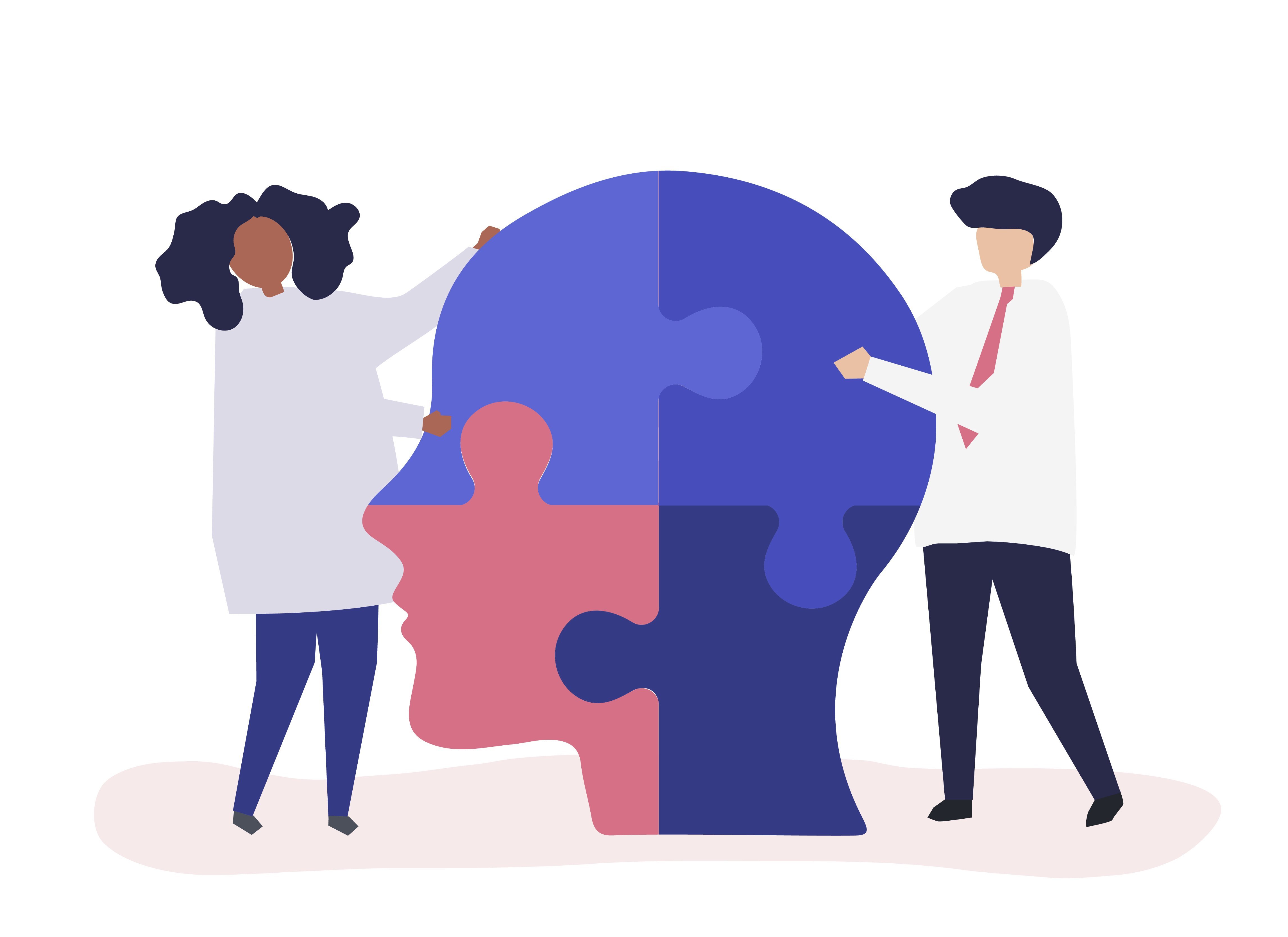 ![Люди, стоящие на пазлы]()