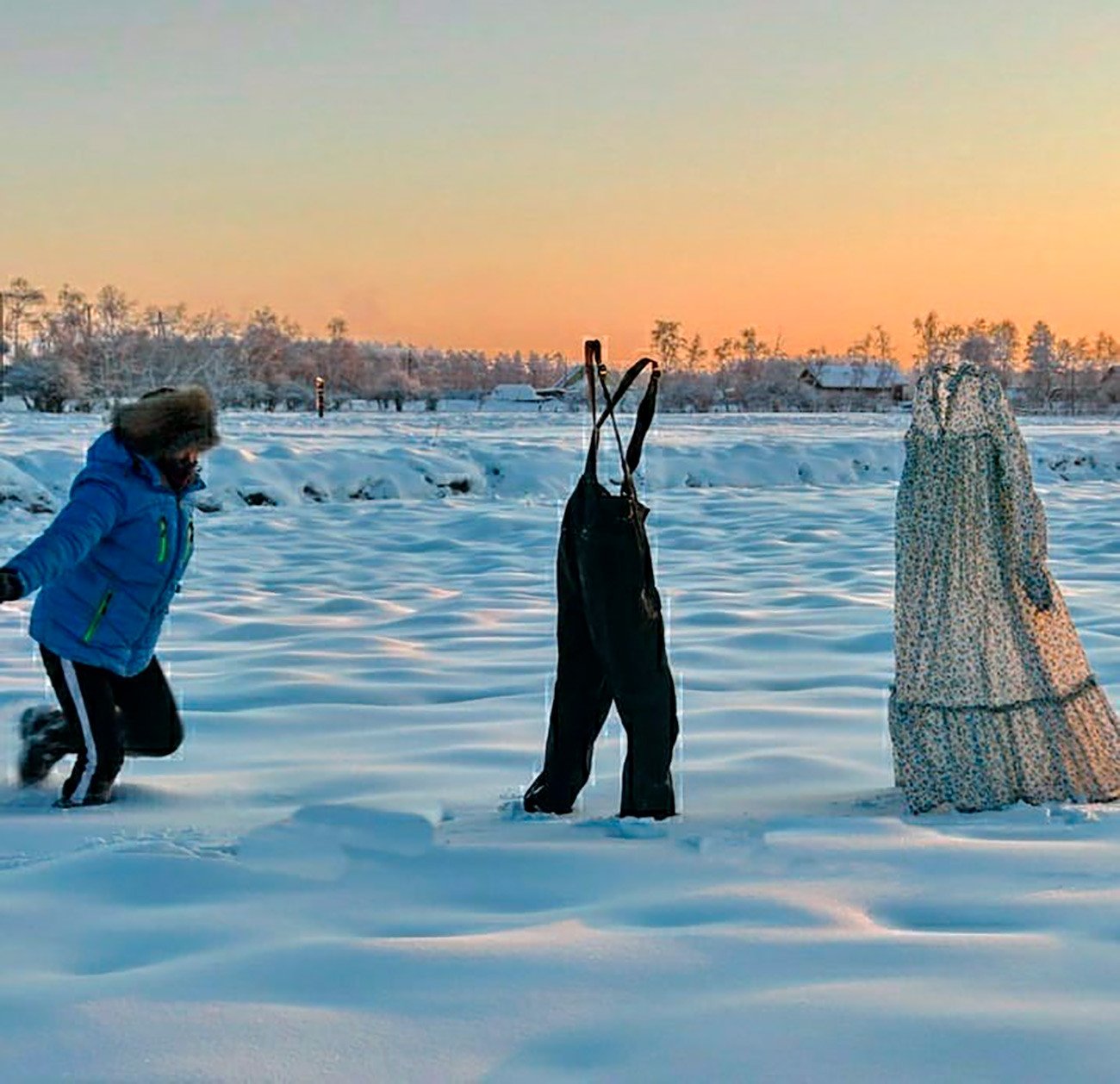 ![Застывшая на морозе одежда]()
