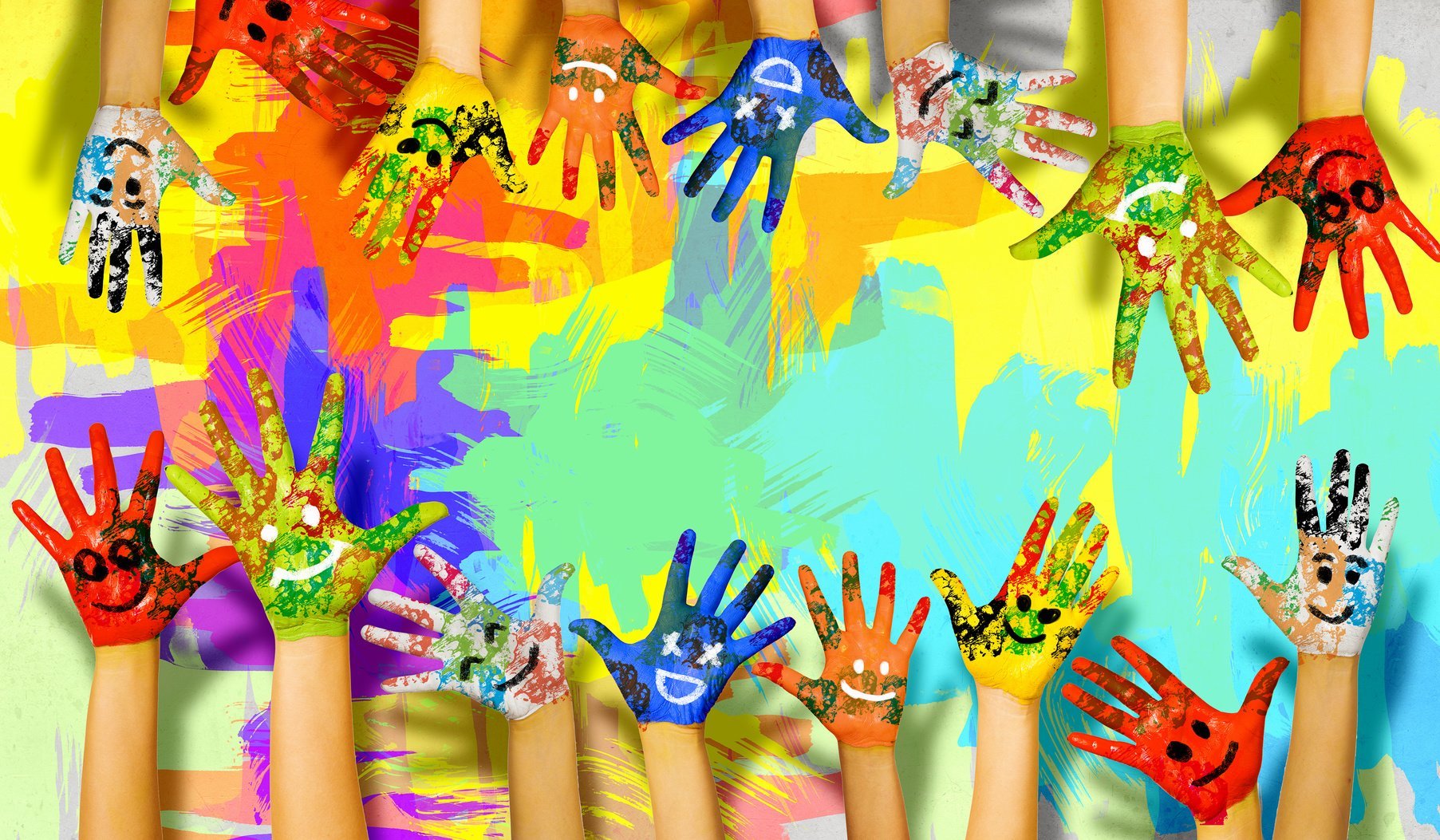 ![Разноцветные детские ладошки]()