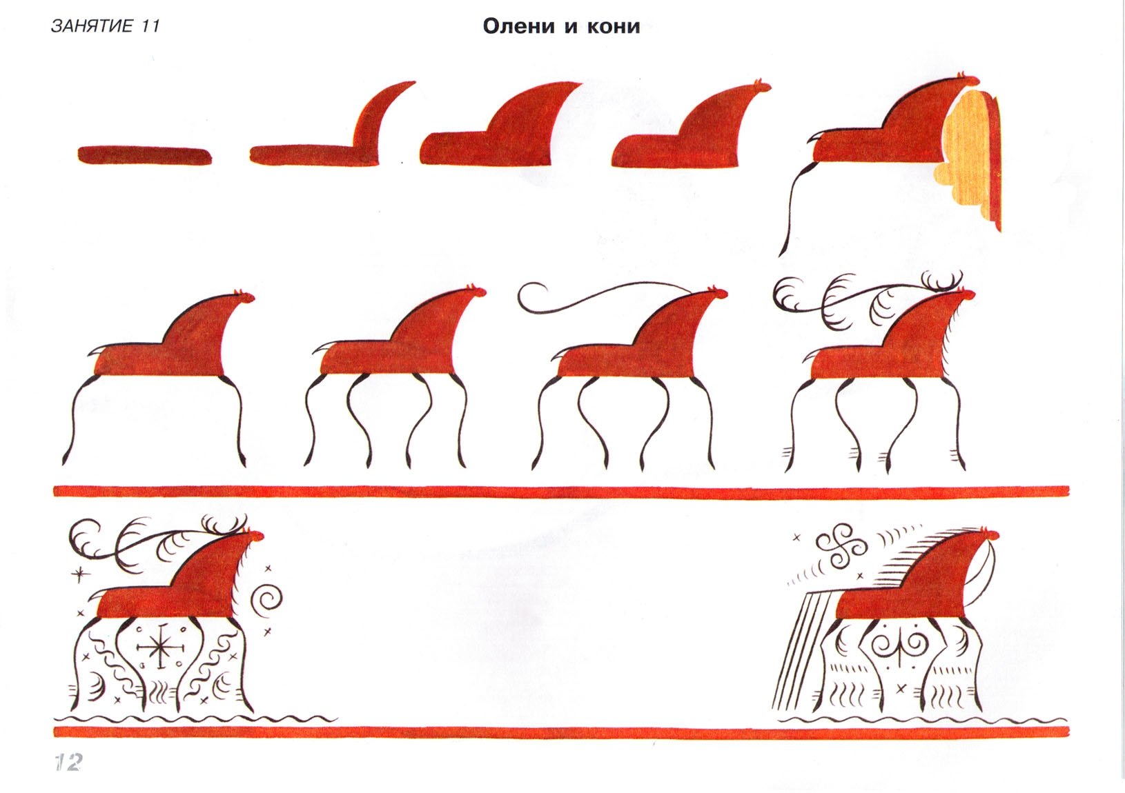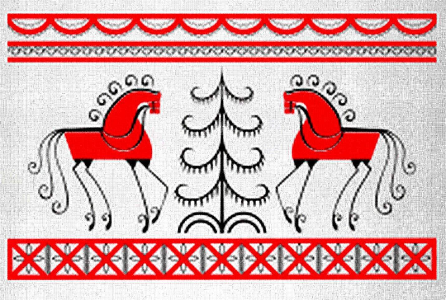 ![Мезенская роспись элементы росписи лошадь]()