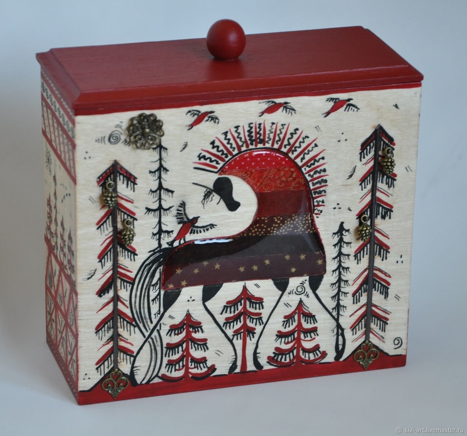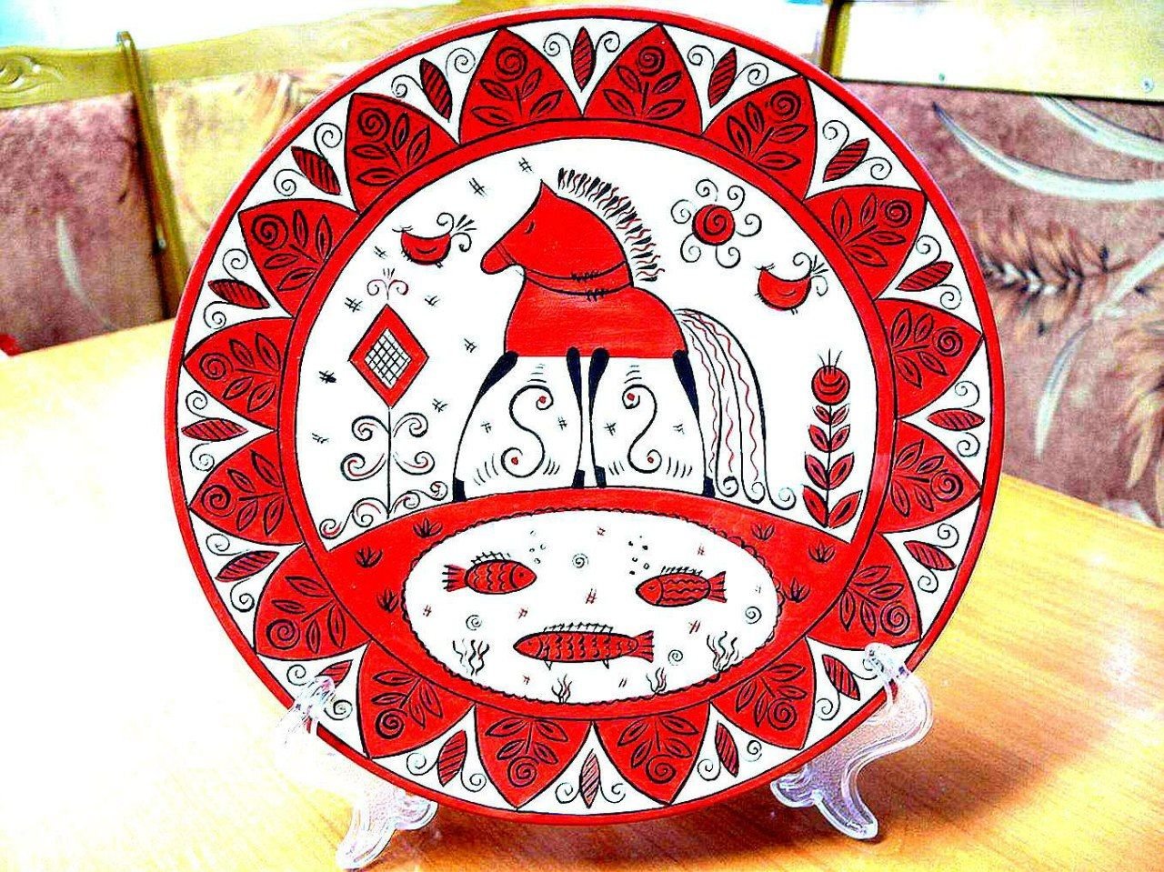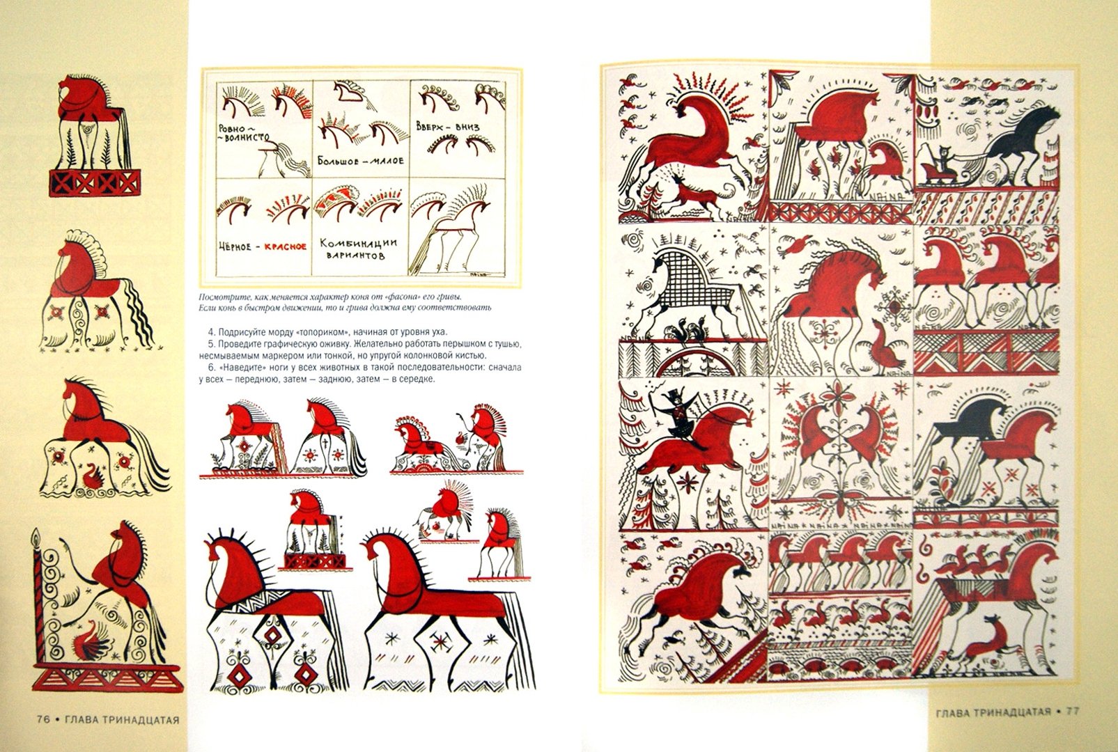 ![Красный конь в мезенской росписи]()