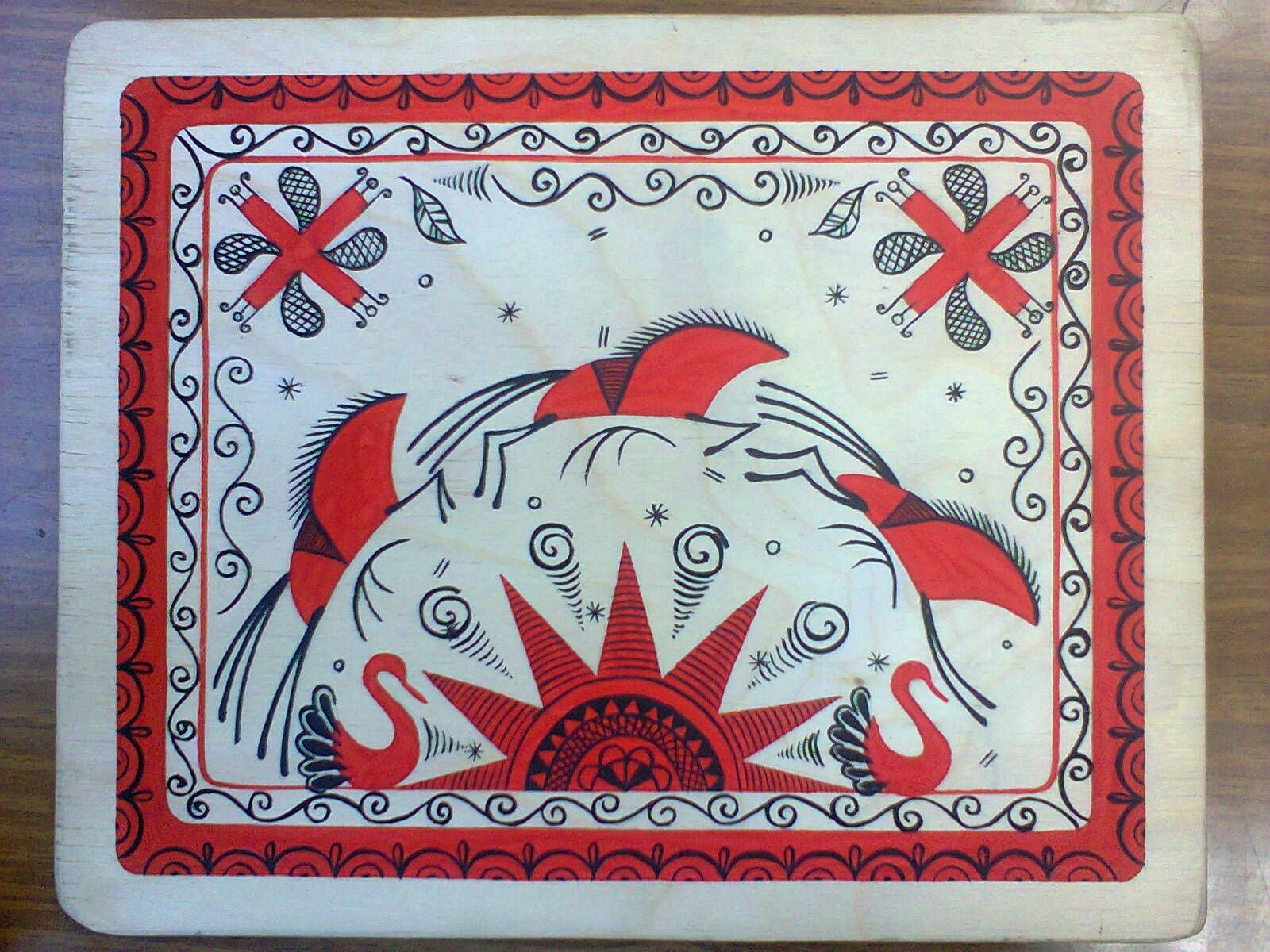 Красный конь в мезенской росписи