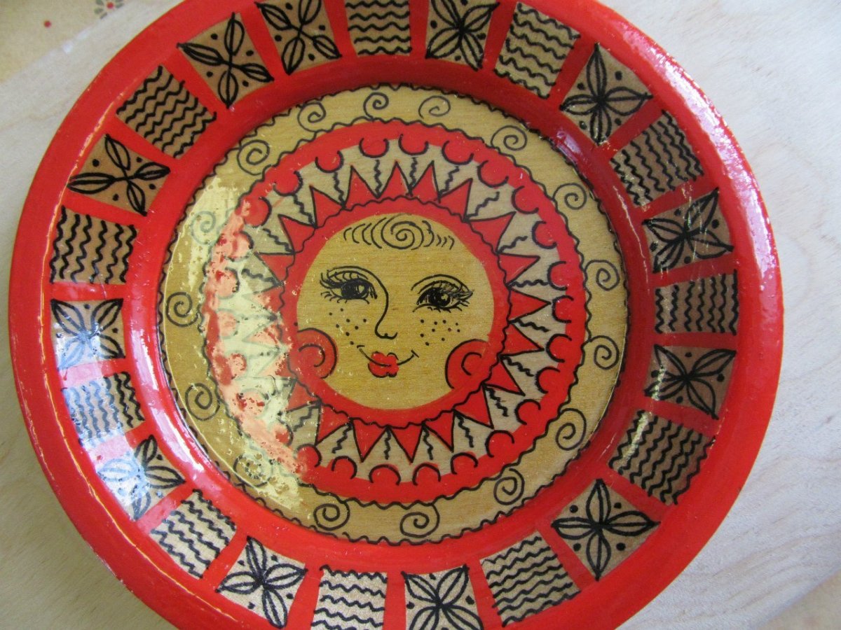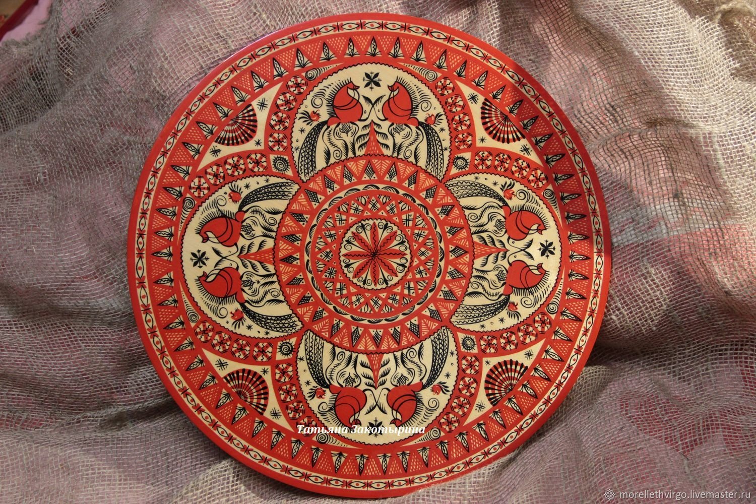 ![Круглое панно в мезенской росписи]()