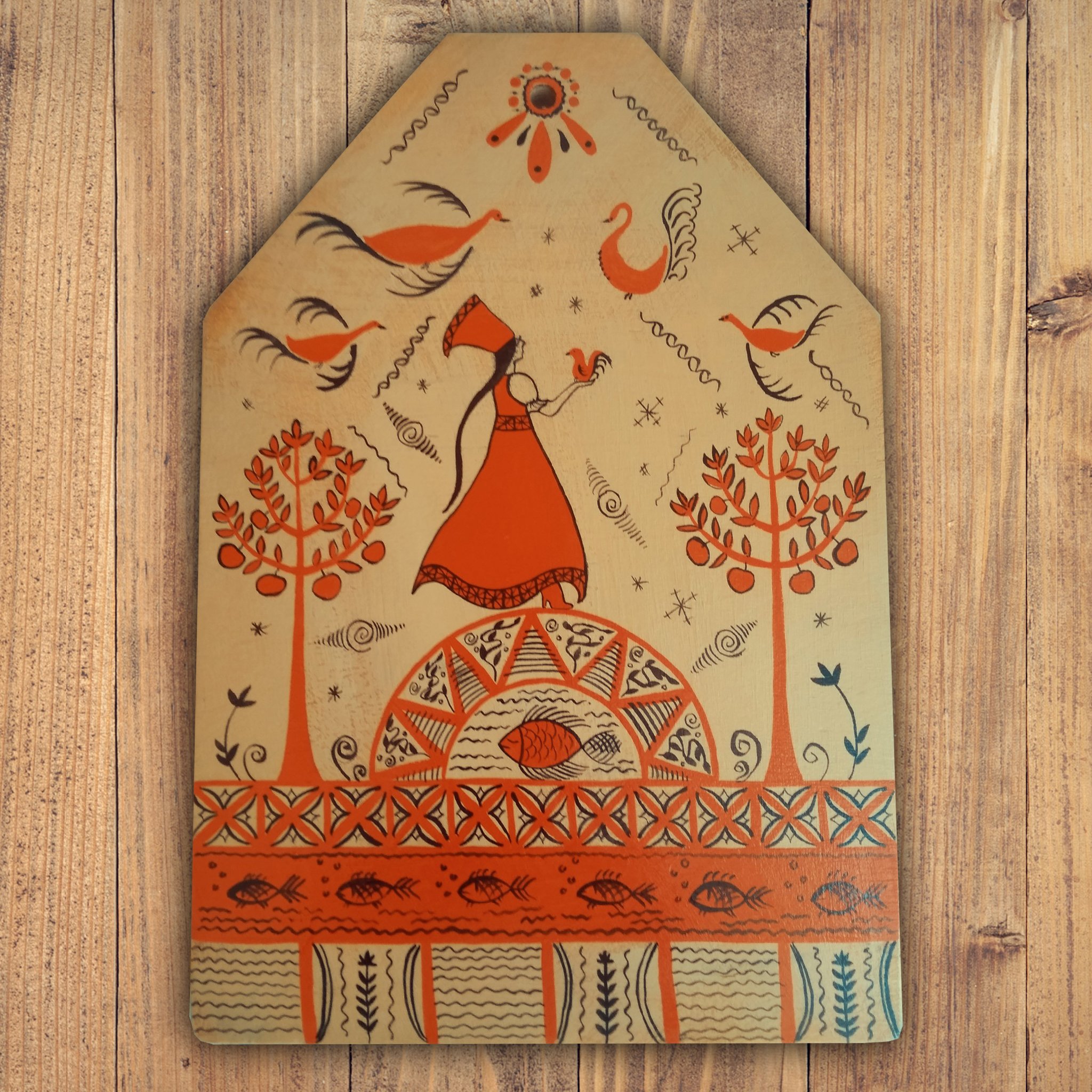 Роспись дощечки Мезенская роспись