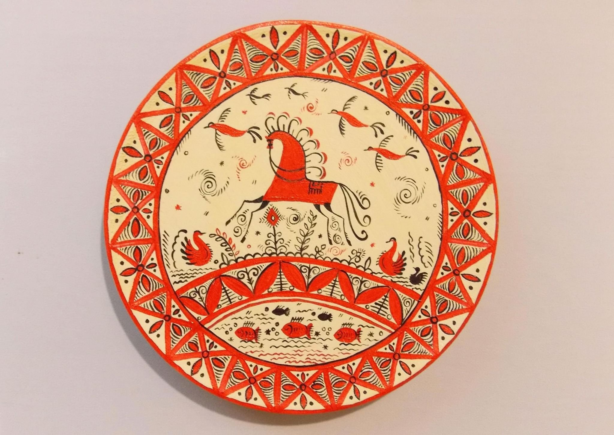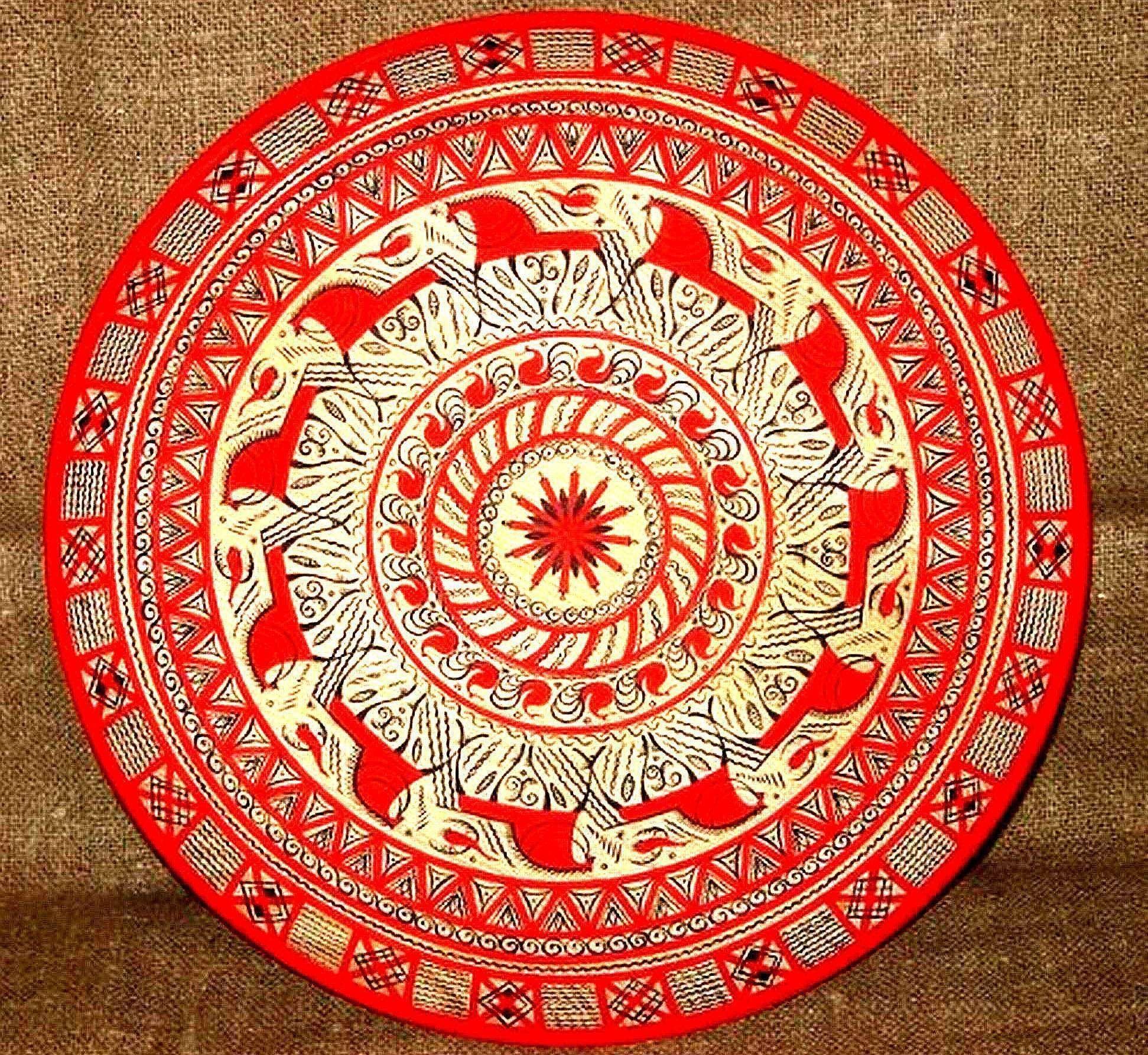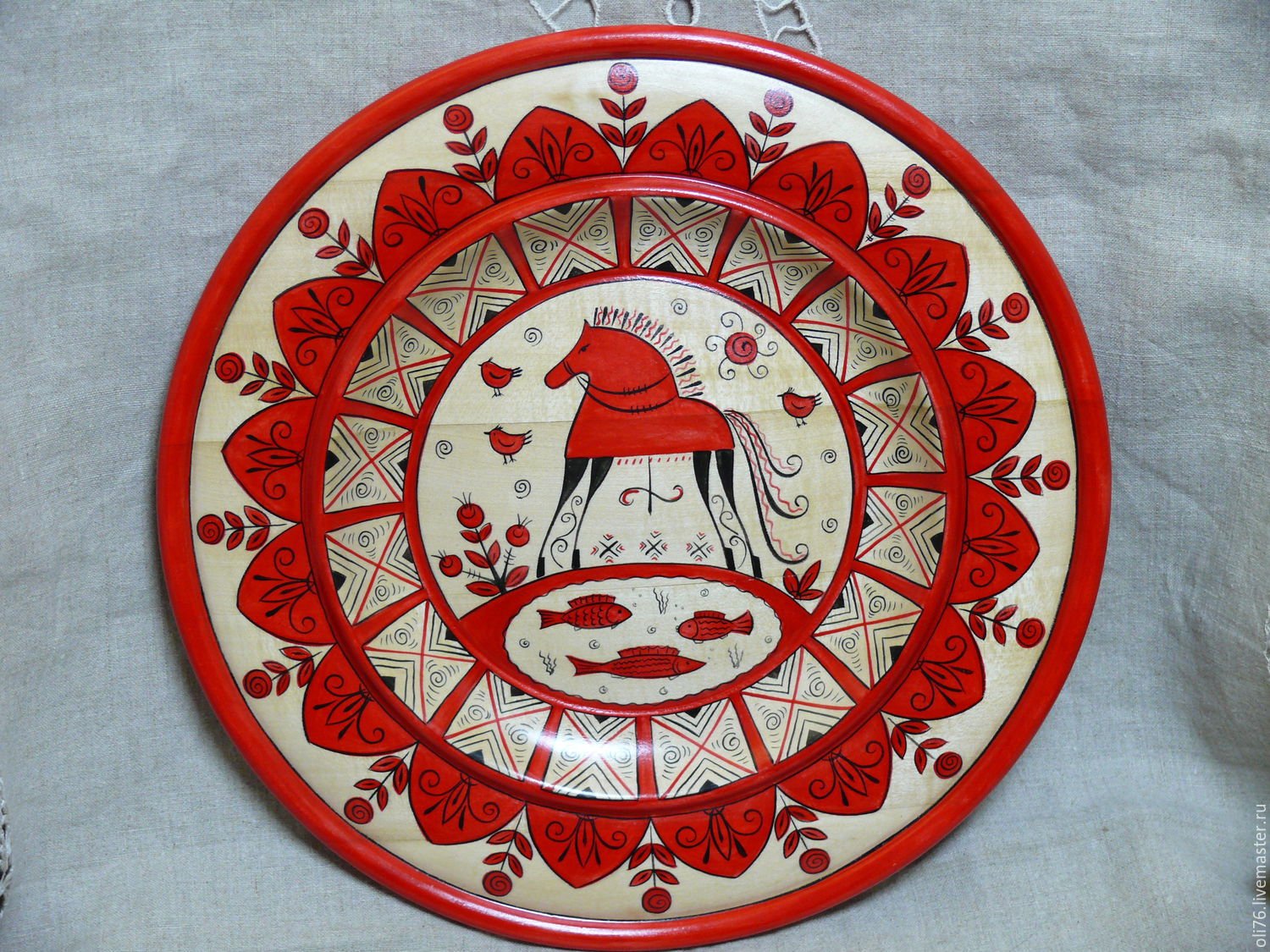 Круглое панно в мезенской росписи
