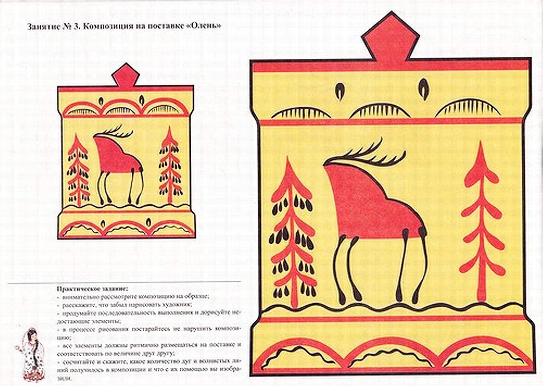 ![Северный олень Мезенская роспись]()