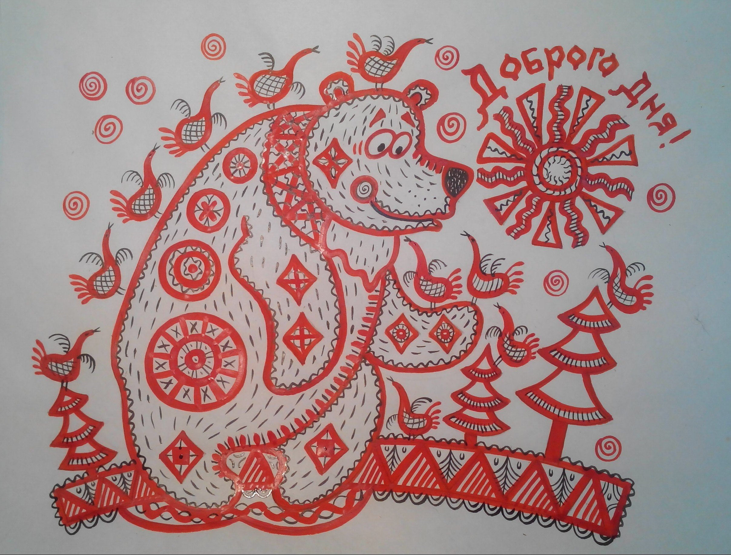 ![Мезенская роспись рисунки детей]()