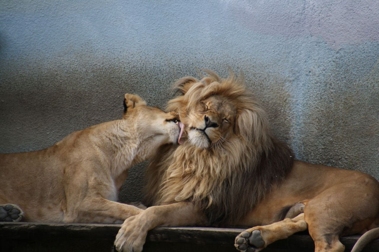 Лев облизывает львицу