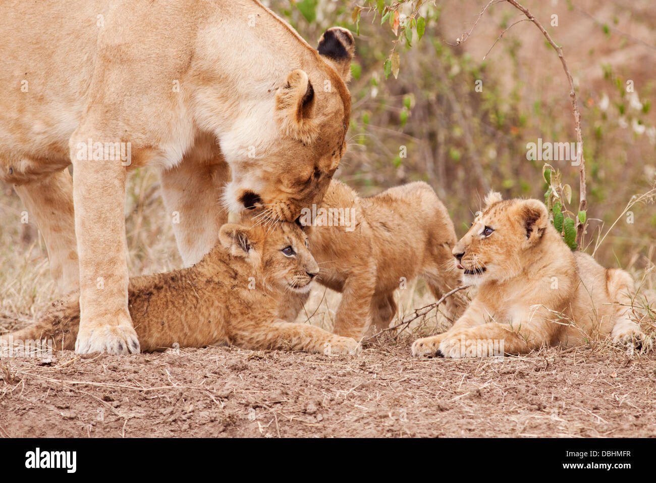 Львица с тремя львятами