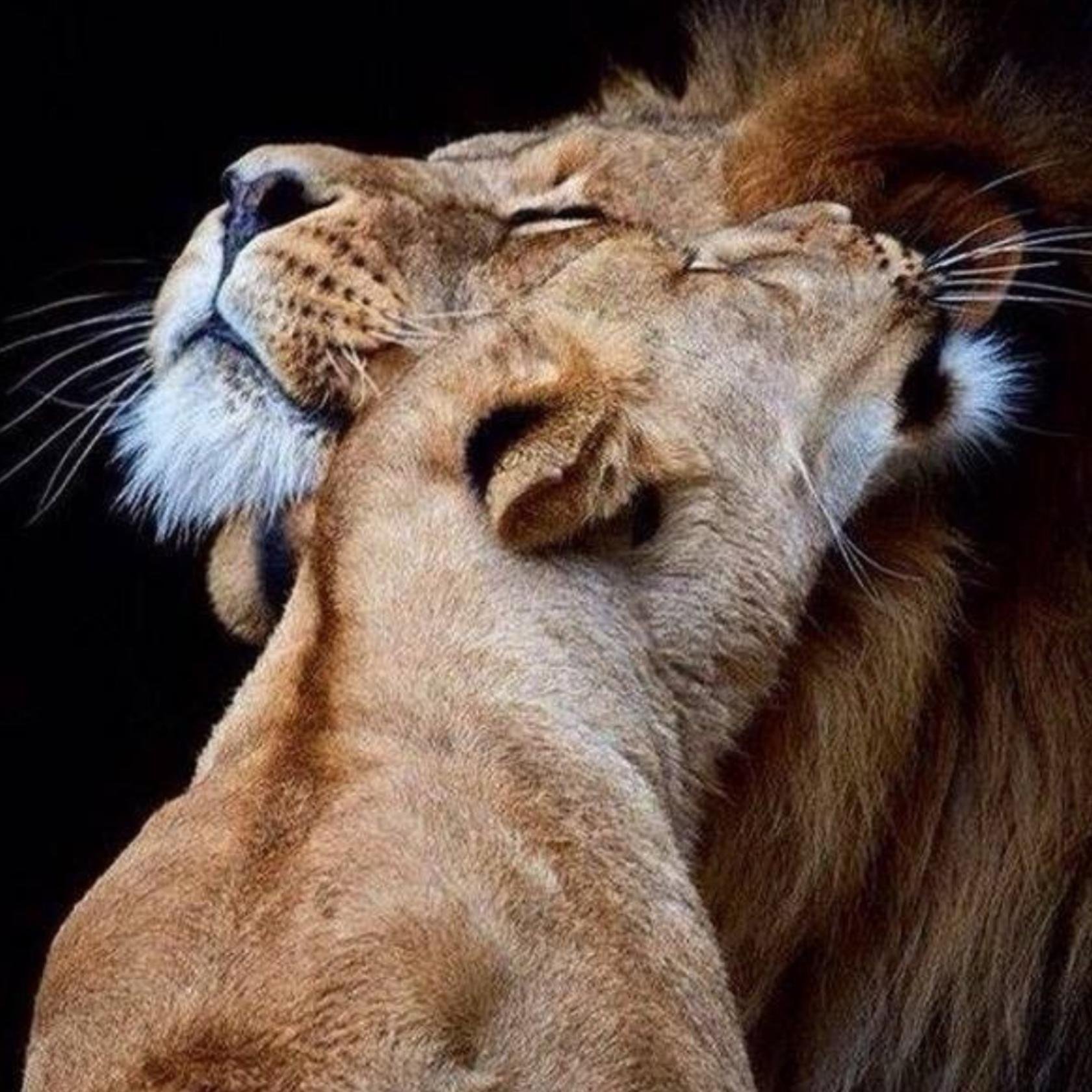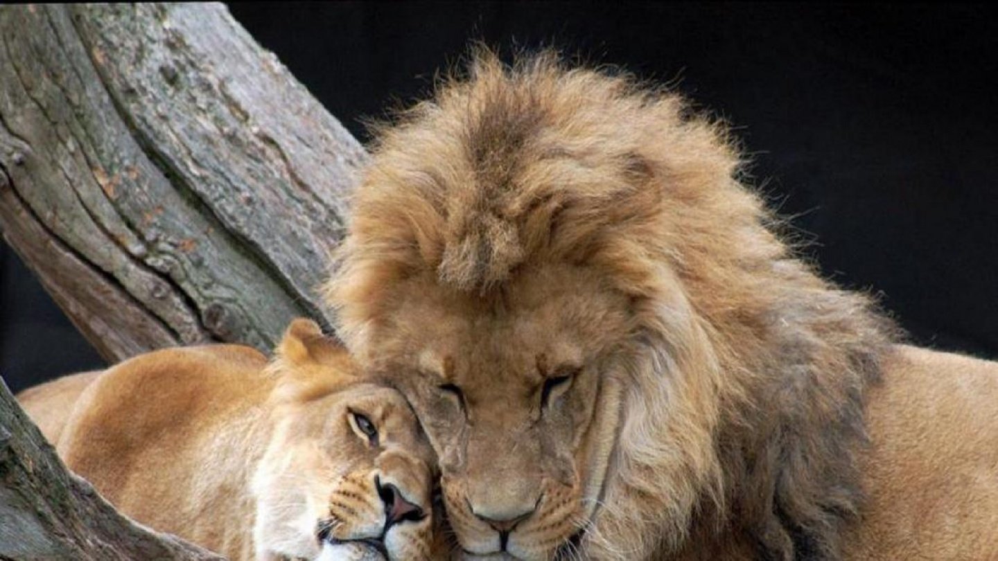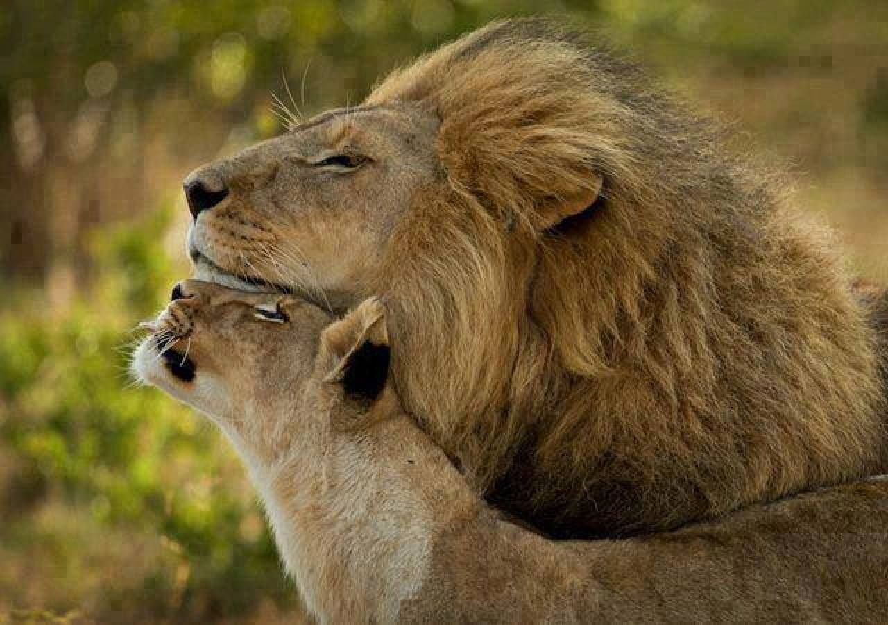 ![Лев обнимает львицу]()