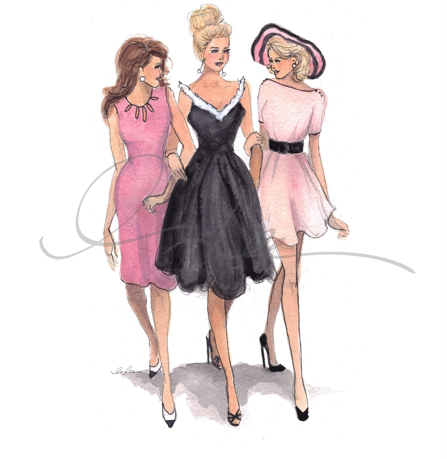 ![Модные подруги рисунок]()