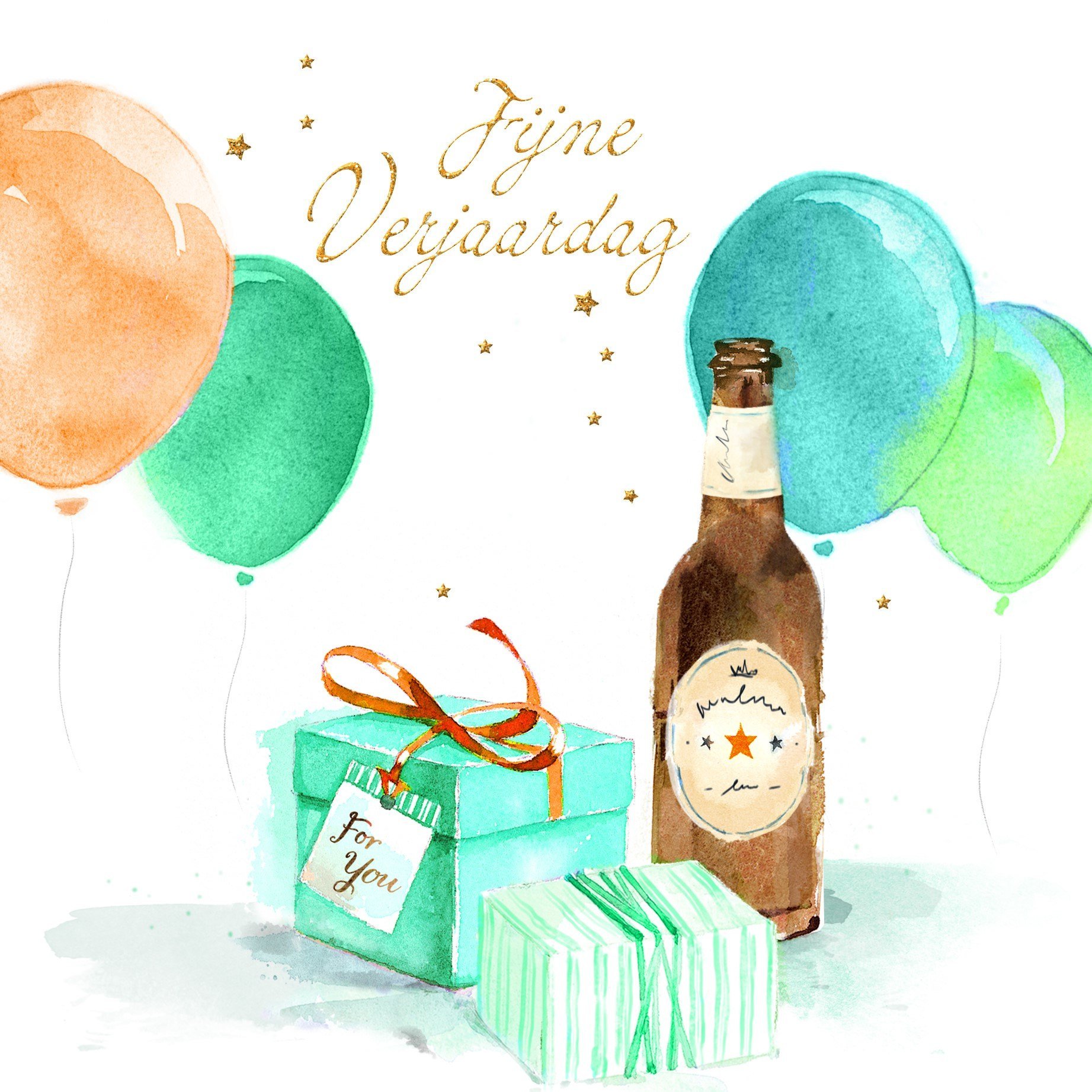 С днём рождения Акварельная открытка