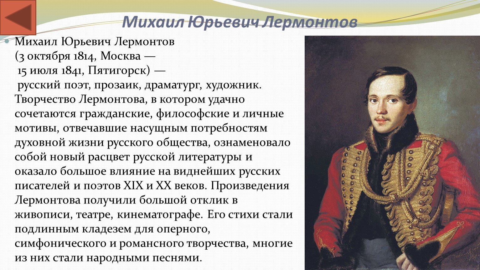 Михаил Юрьевич Лермонтов Лермонтов