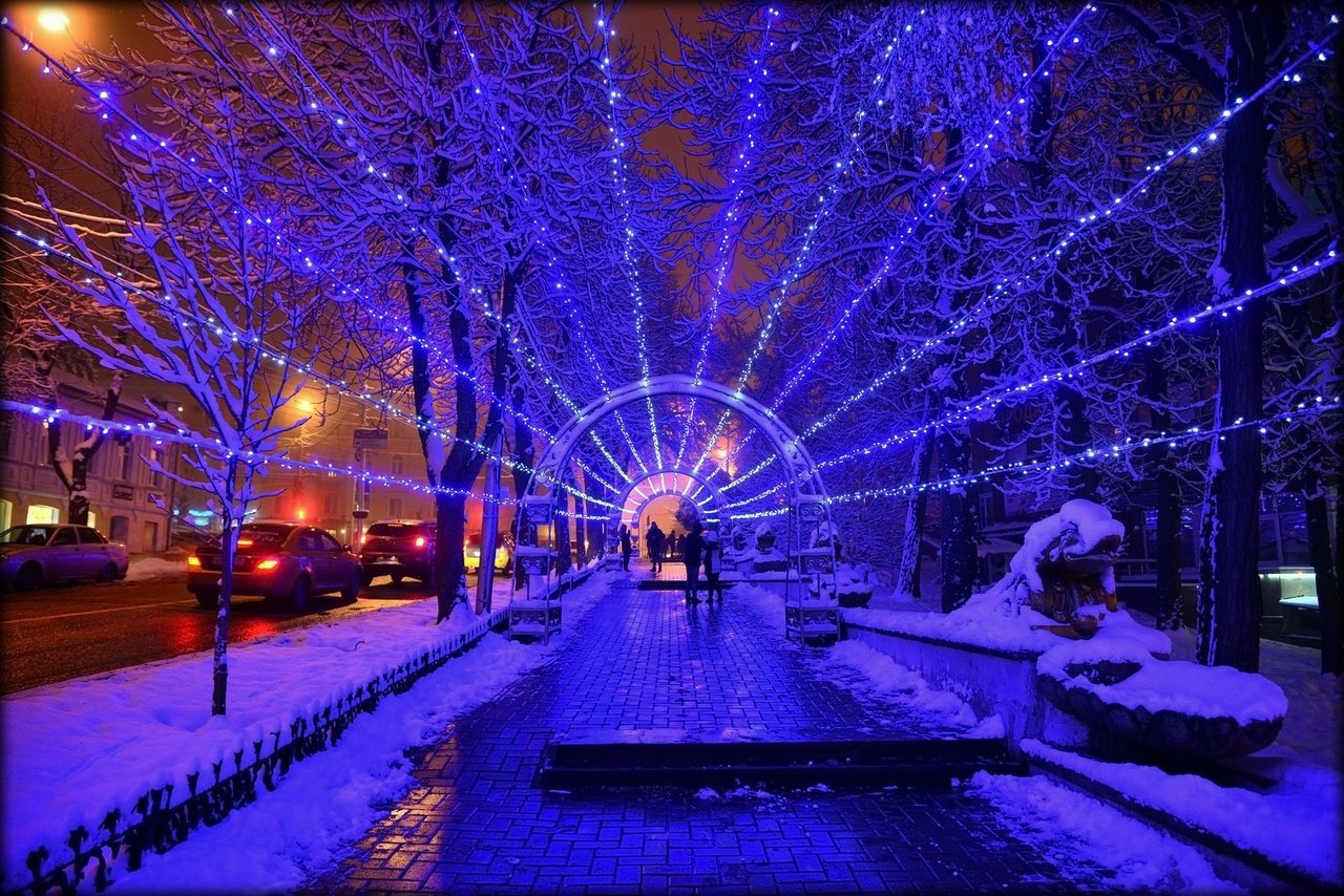 Иллюминация в сквере Ставрополя