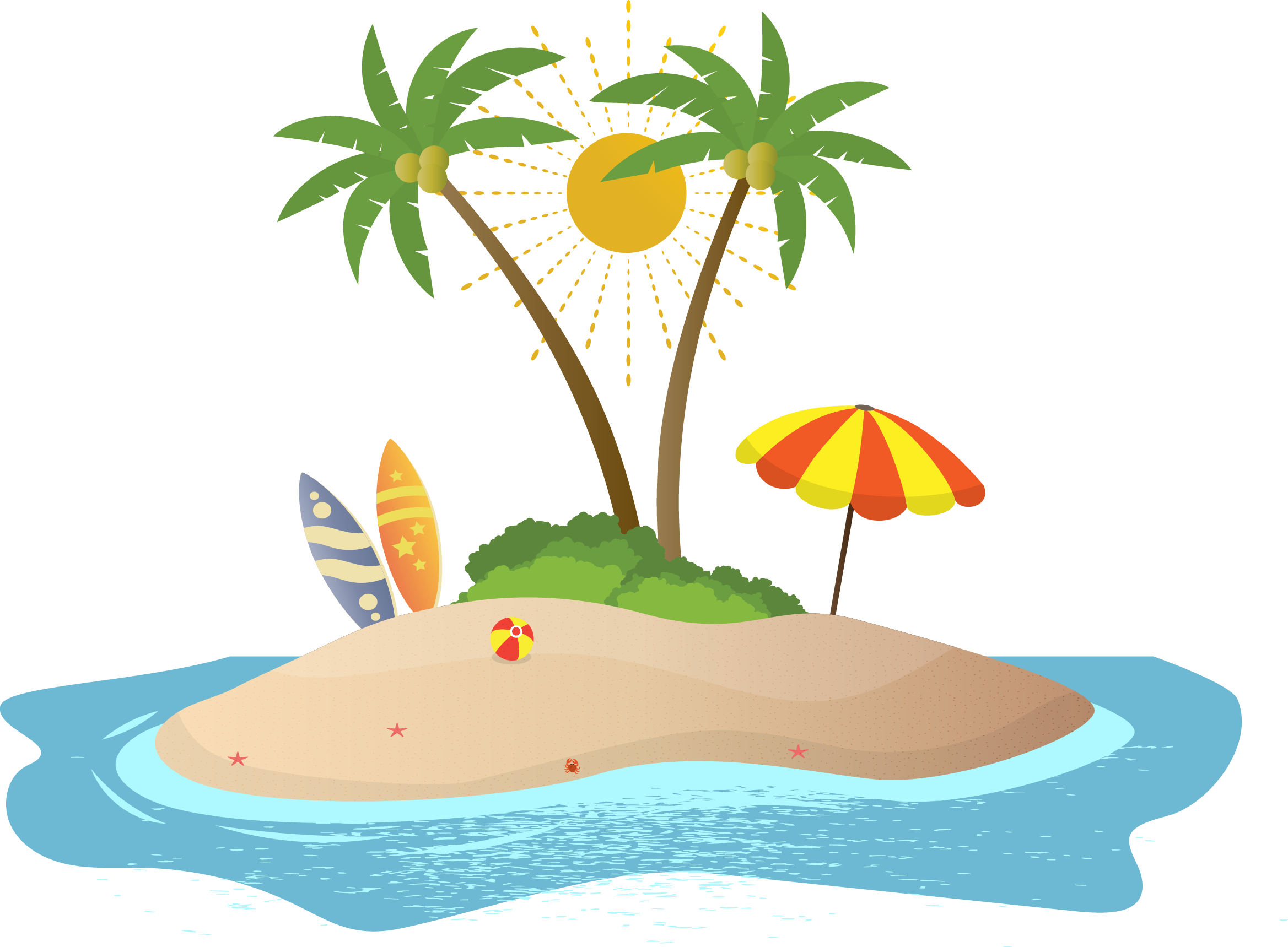 ![Мультяшный остров в море]()