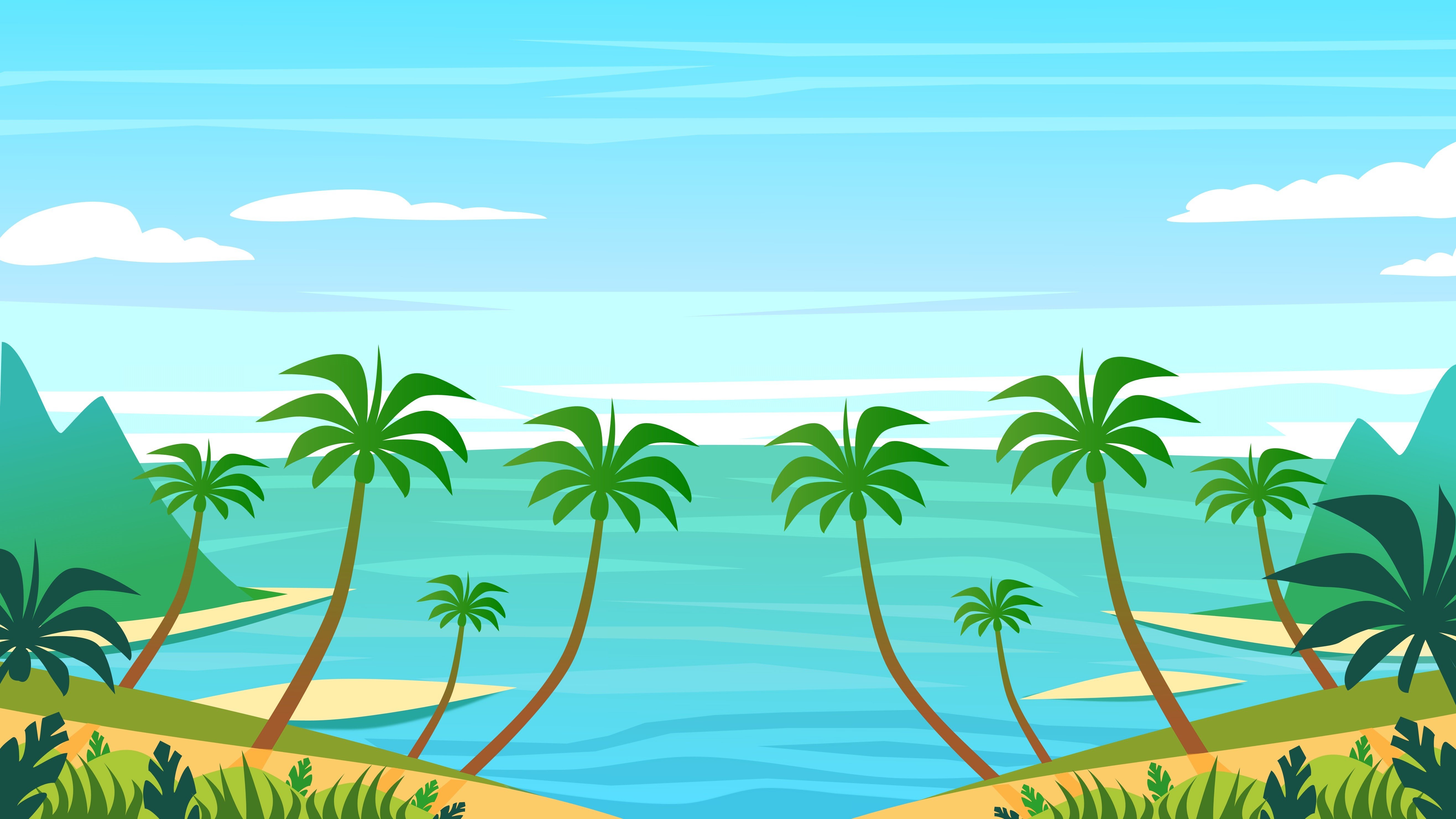 ![Мультяшный остров с пальмами]()