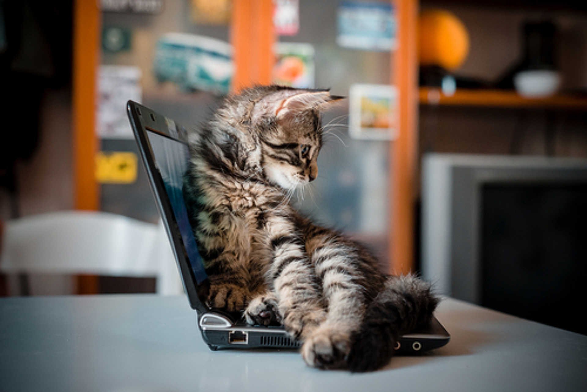 Котенок за ноутбуком
