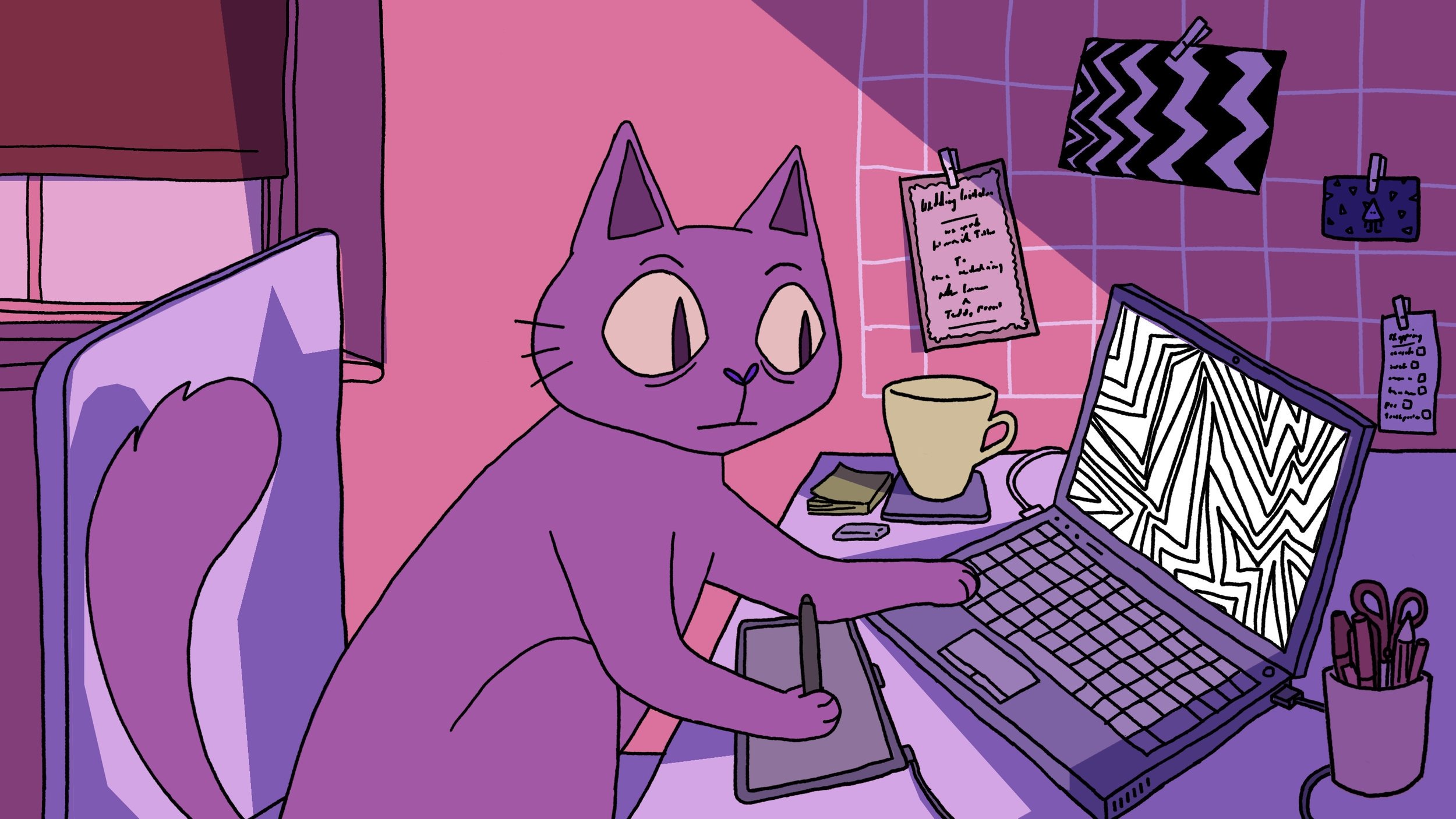 Котик за компьютером арт