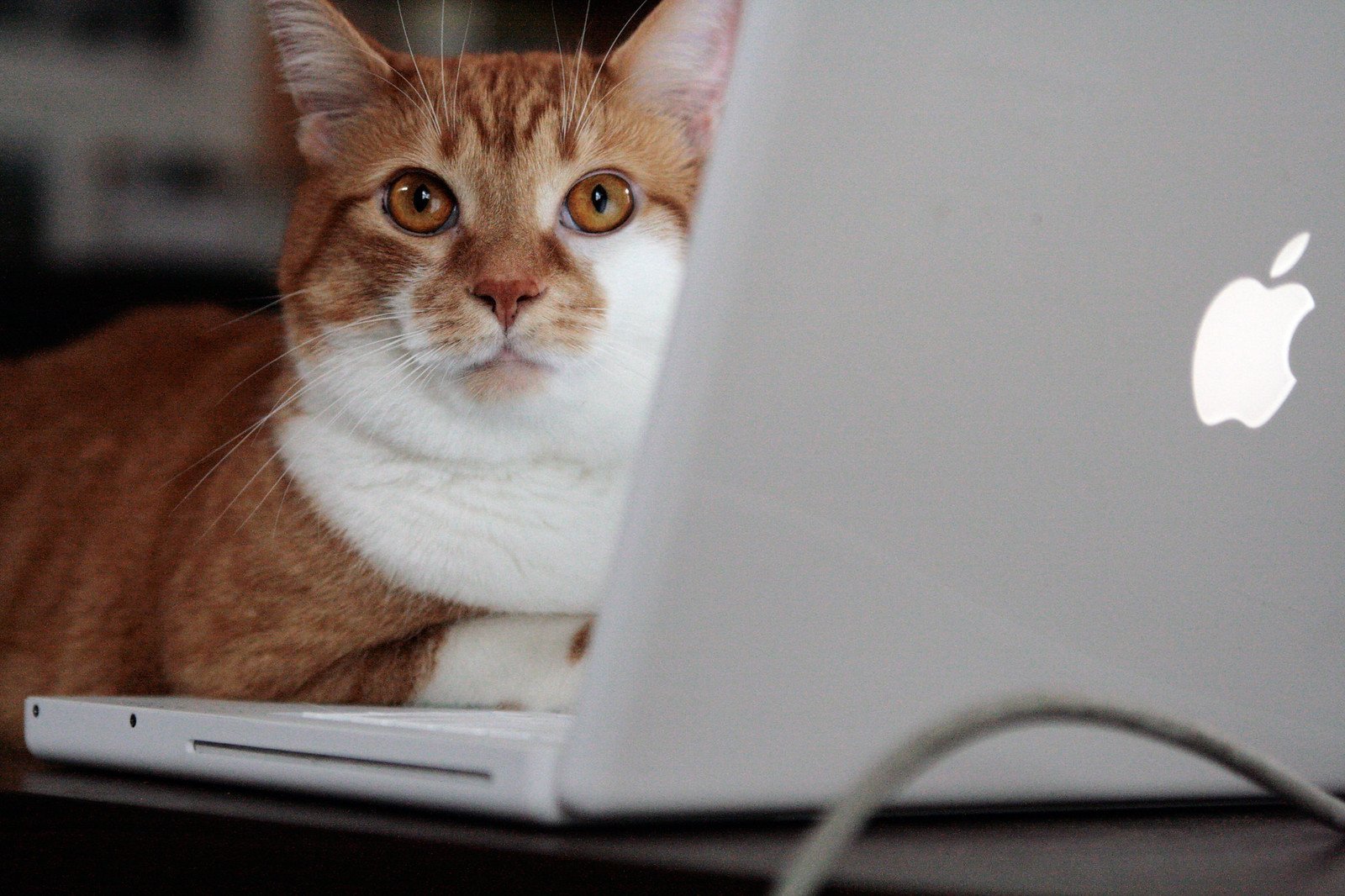Кот за ноутбуком