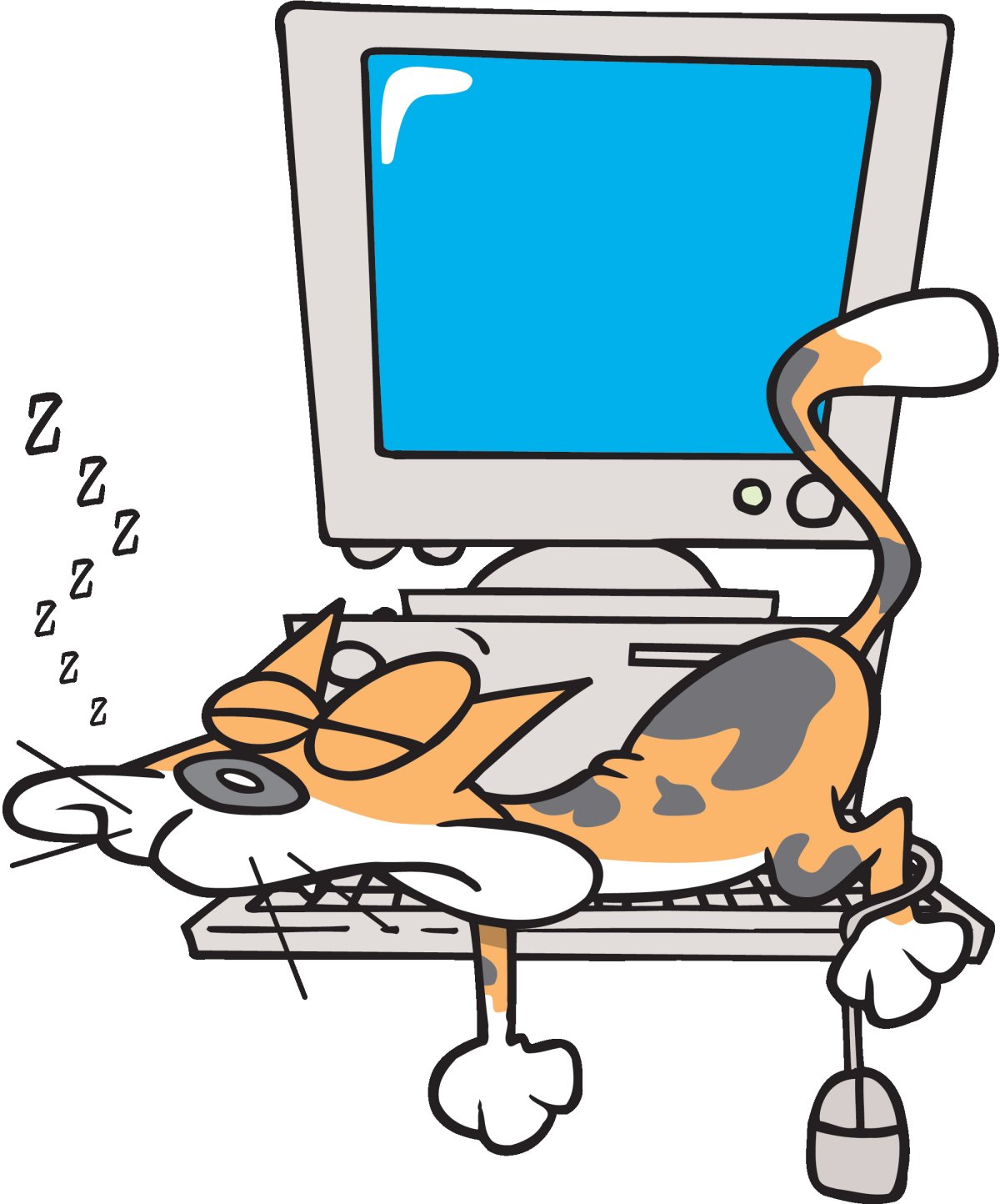Мультяшный кот с компьютером