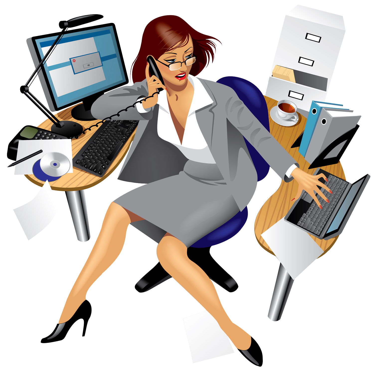 ![Девушка в офисе нарисованная]()