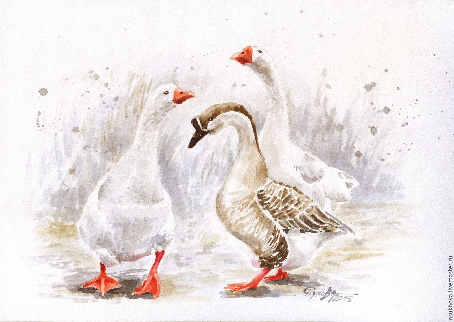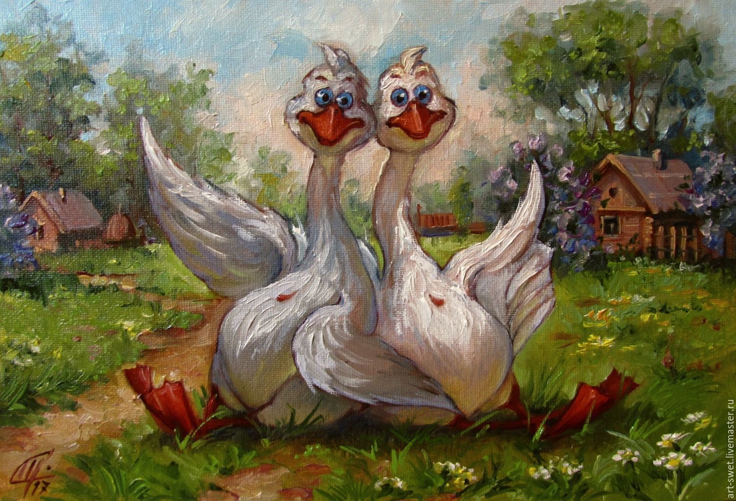 Гуси живопись маслом