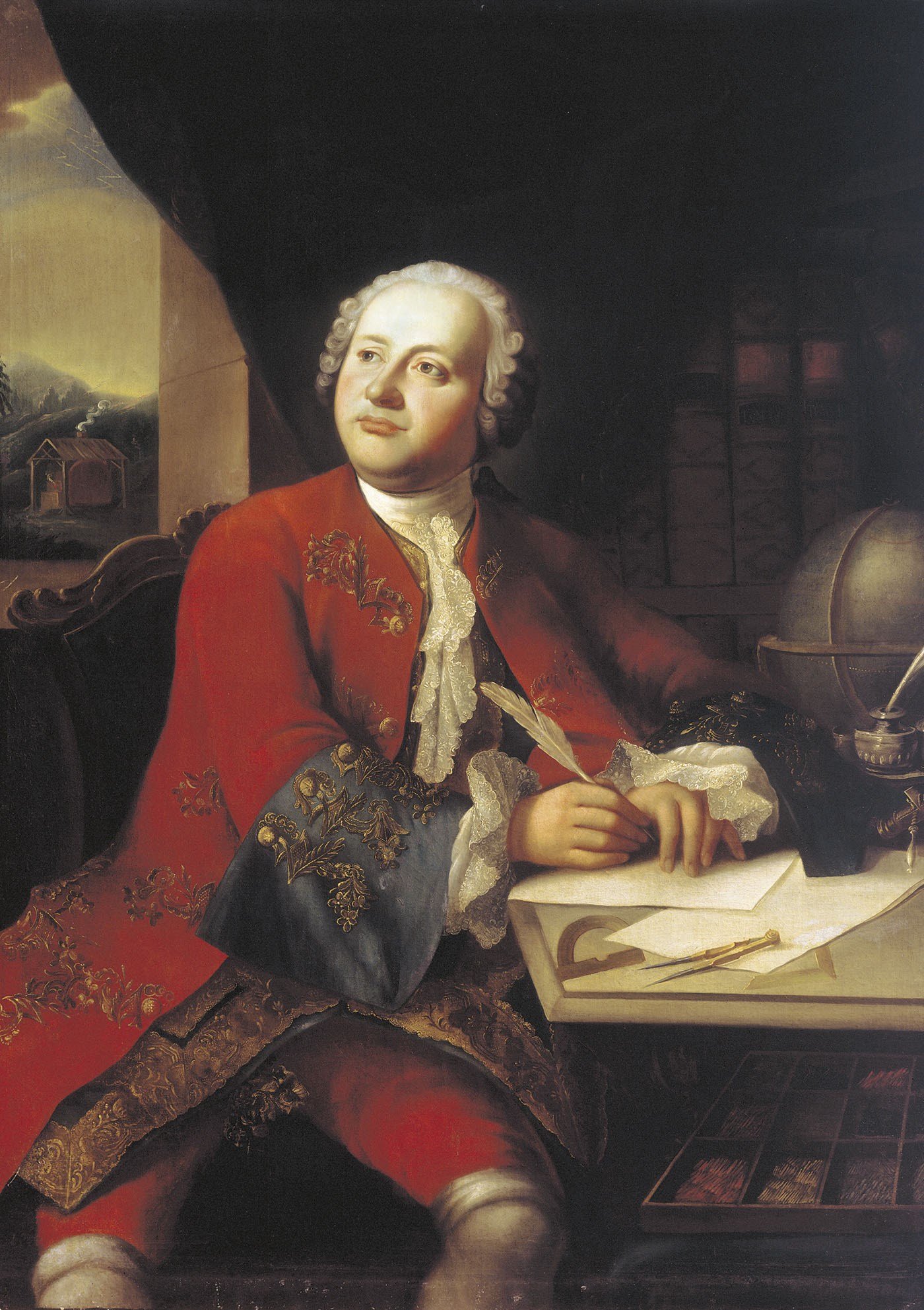 ![Ломоносов Михаил Васильевич за работой]()