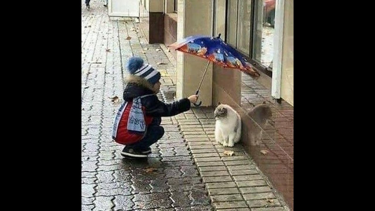 Дети и животные под дождем