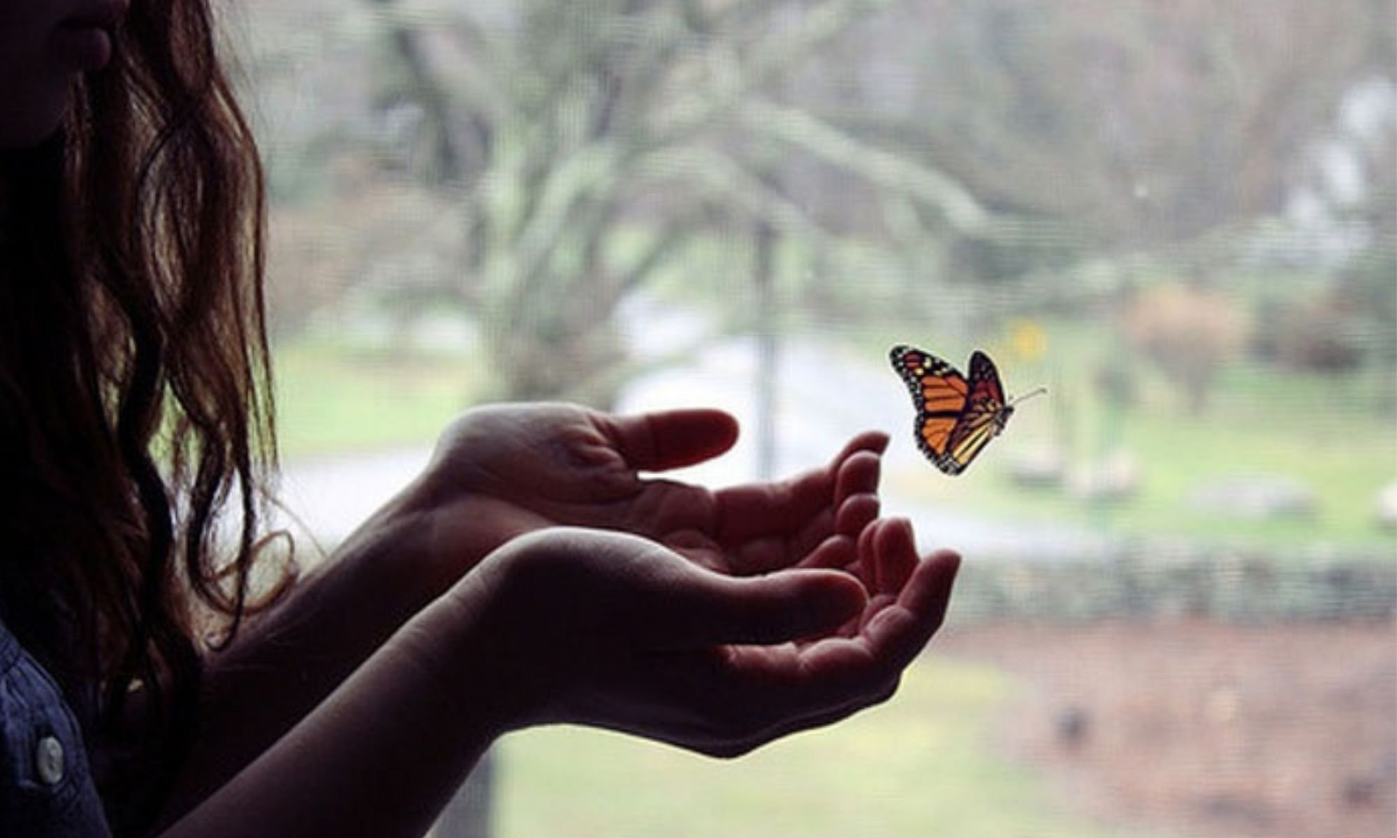 ![Девушка с бабочкой на руке]()