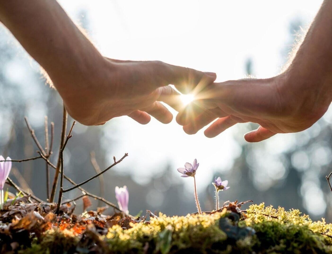 ![Цветок лотоса в руках]()