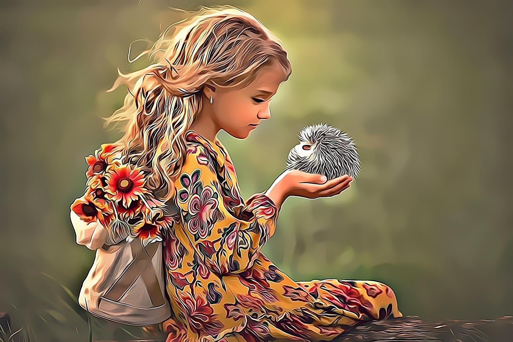 ![Девочка с ежиком]()