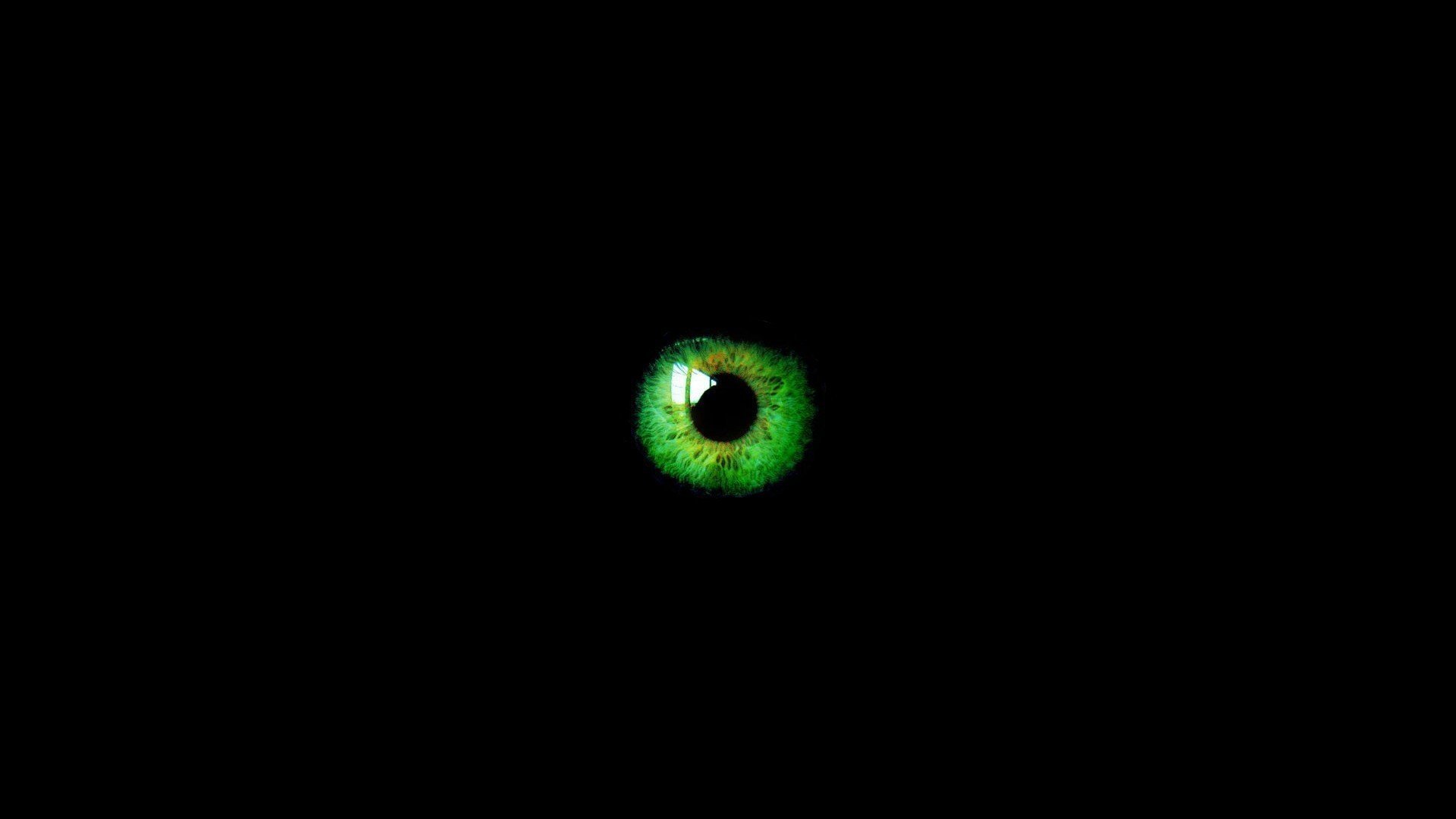 Зеленые глаза на черном фоне