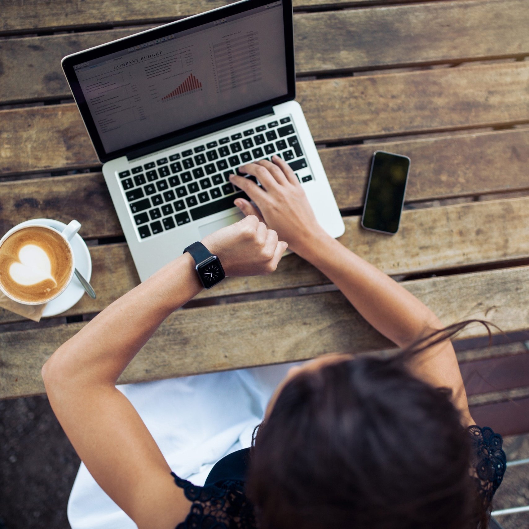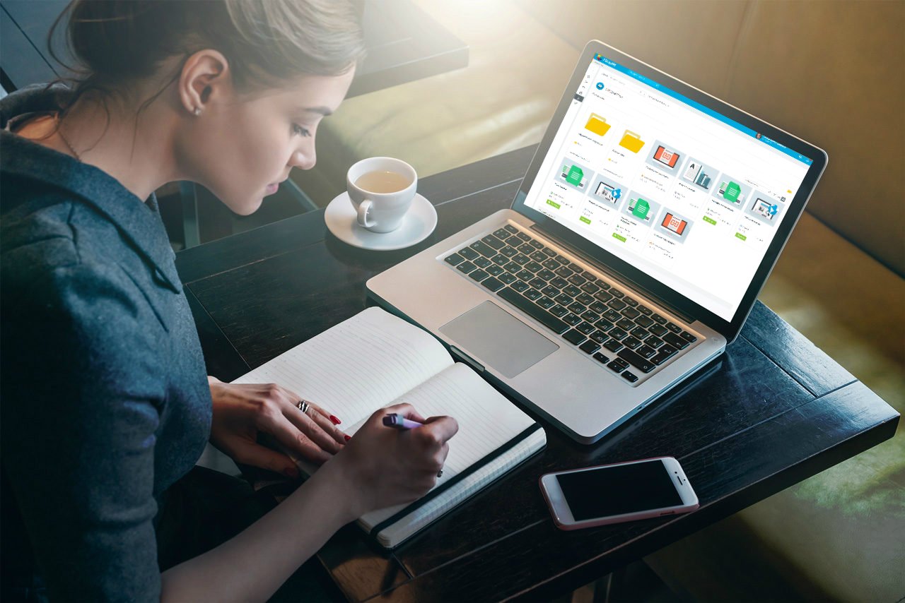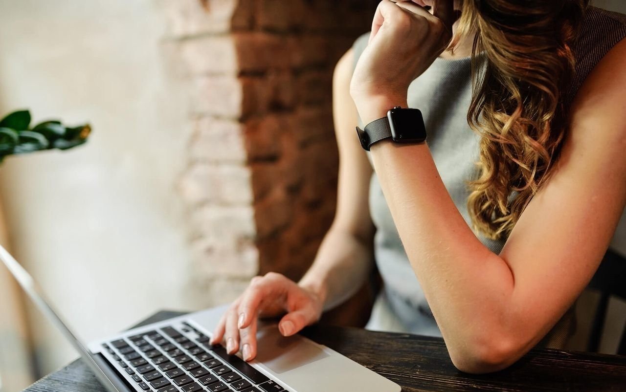 Девушка с телефоном и компьютером