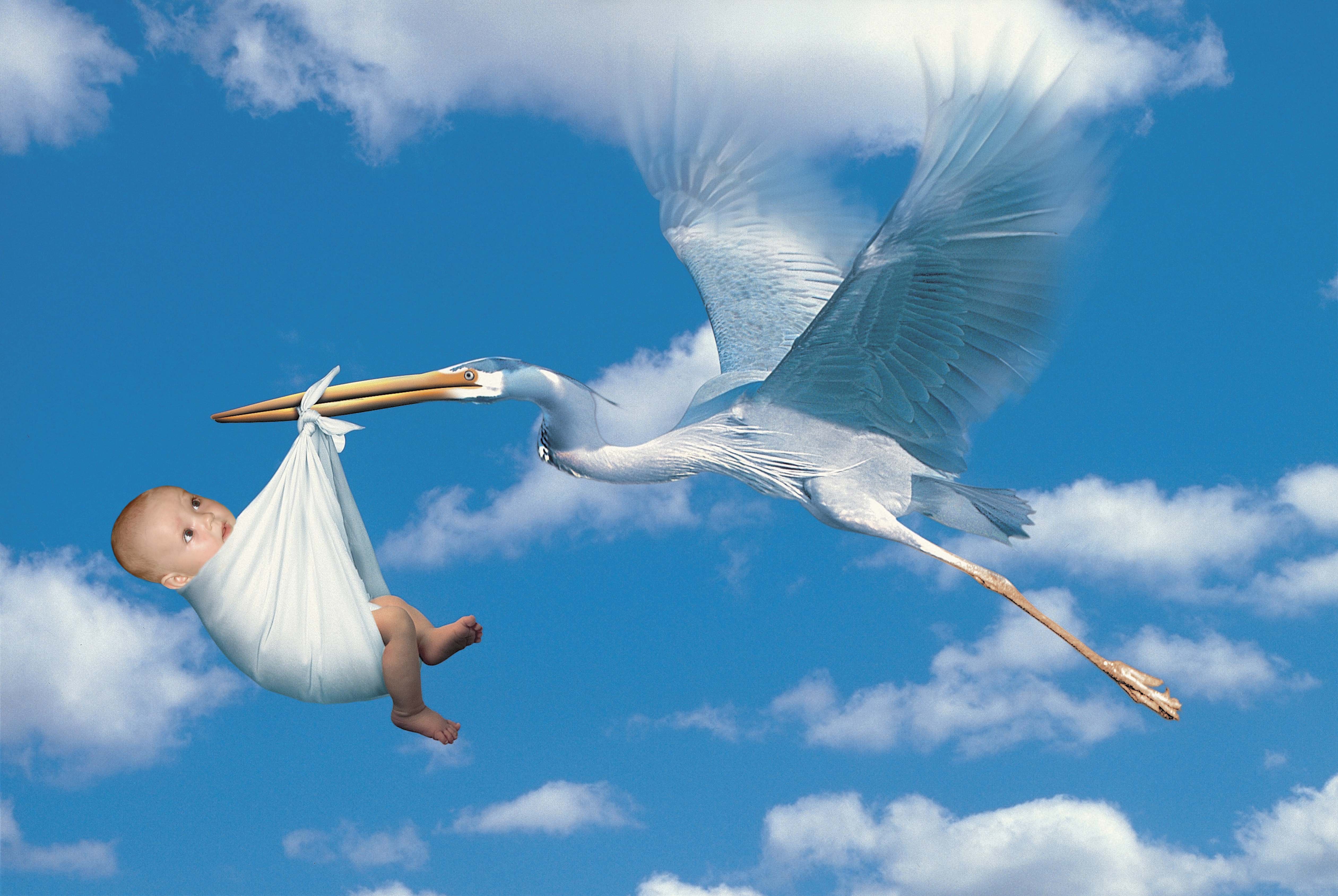 Аист несёт младенца