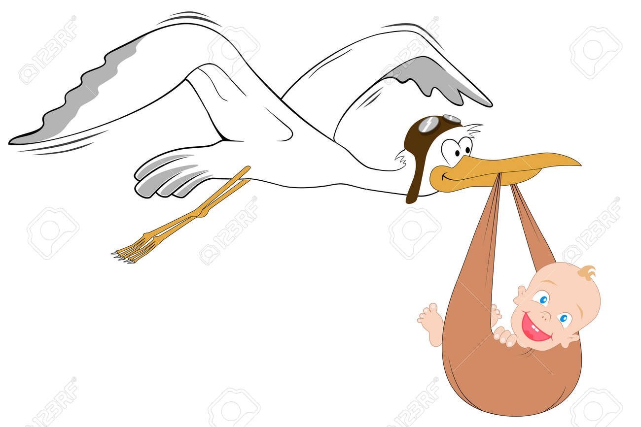 ![Аист с младенцем из мультика]()
