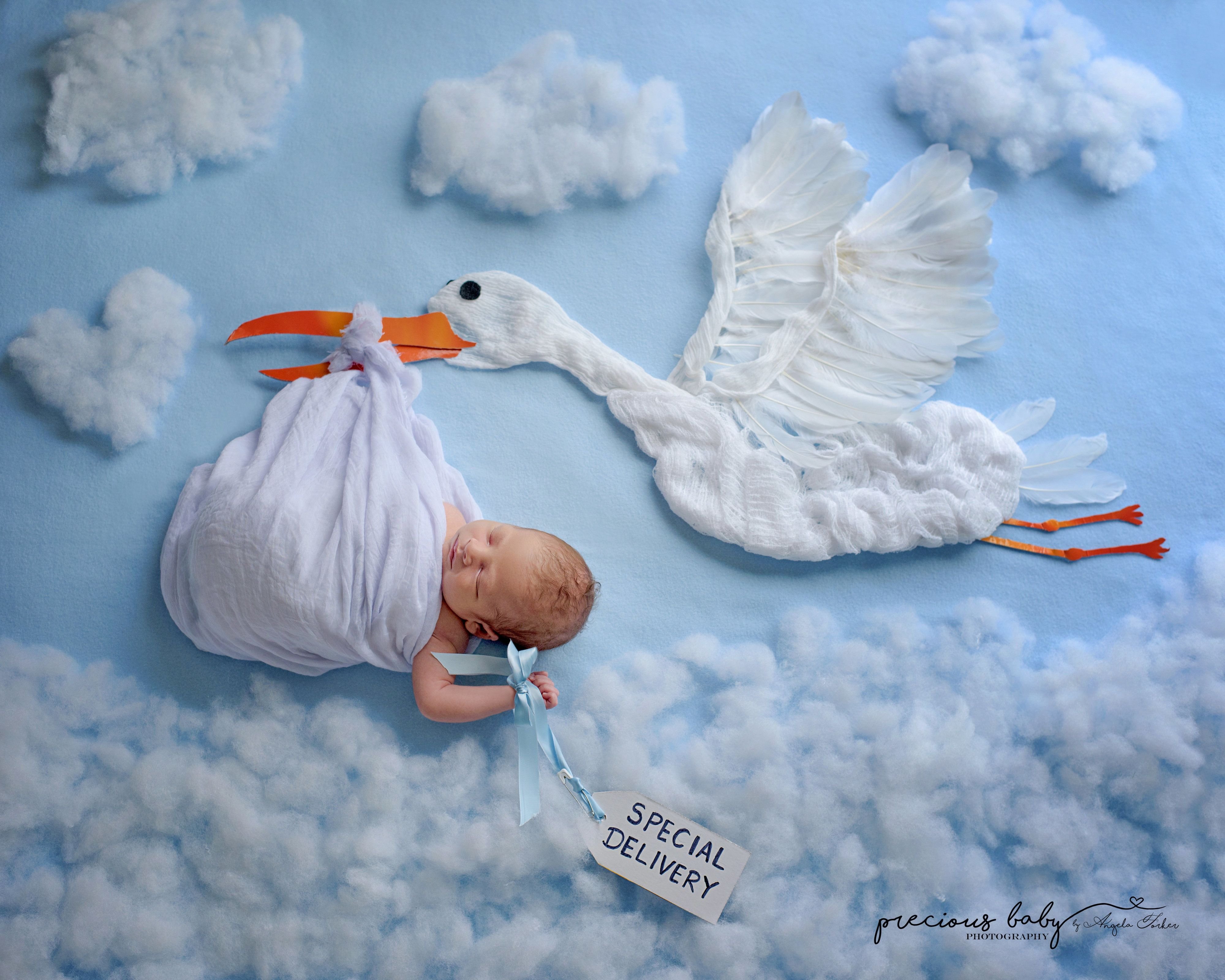 ![Аист с младенцем мальчиком]()