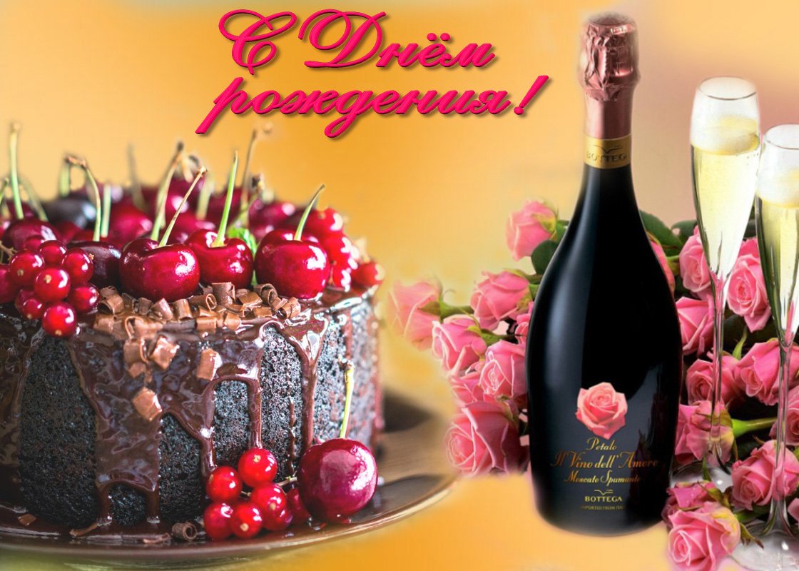 ![С днём рождения шампанское и торт]()