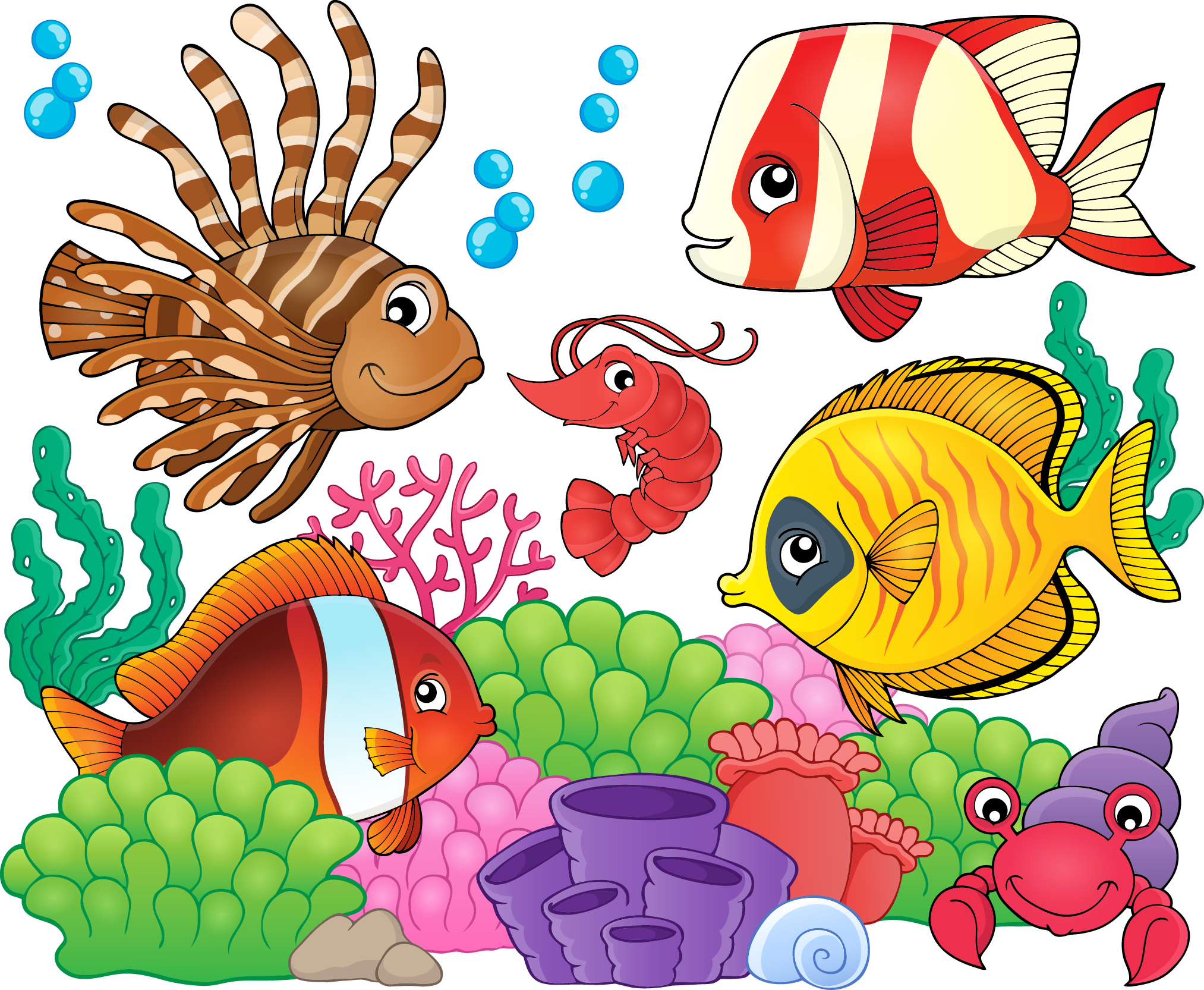 Яркие морские рыбки мультяшные