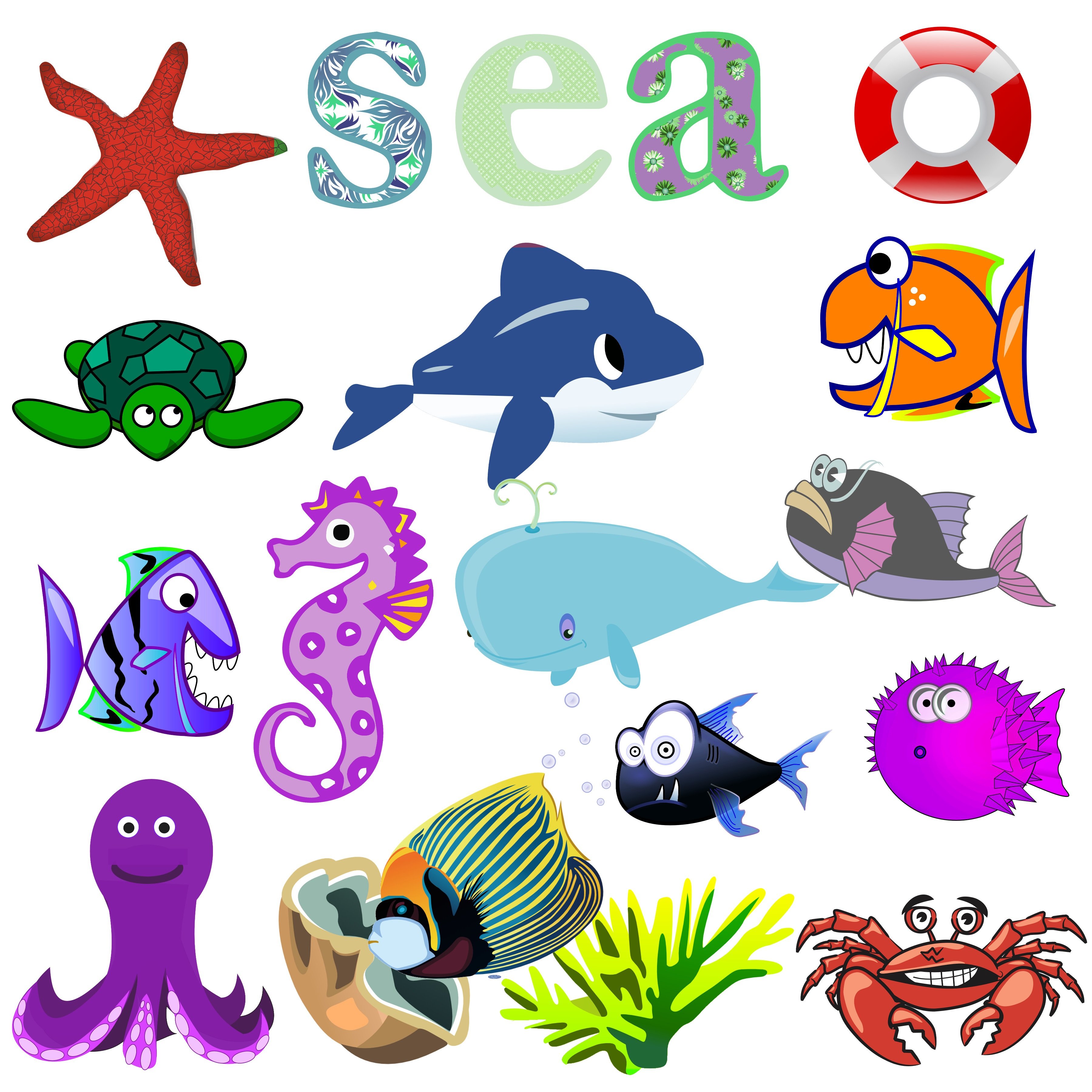 Морские животные и рыбы, водоросли для детей