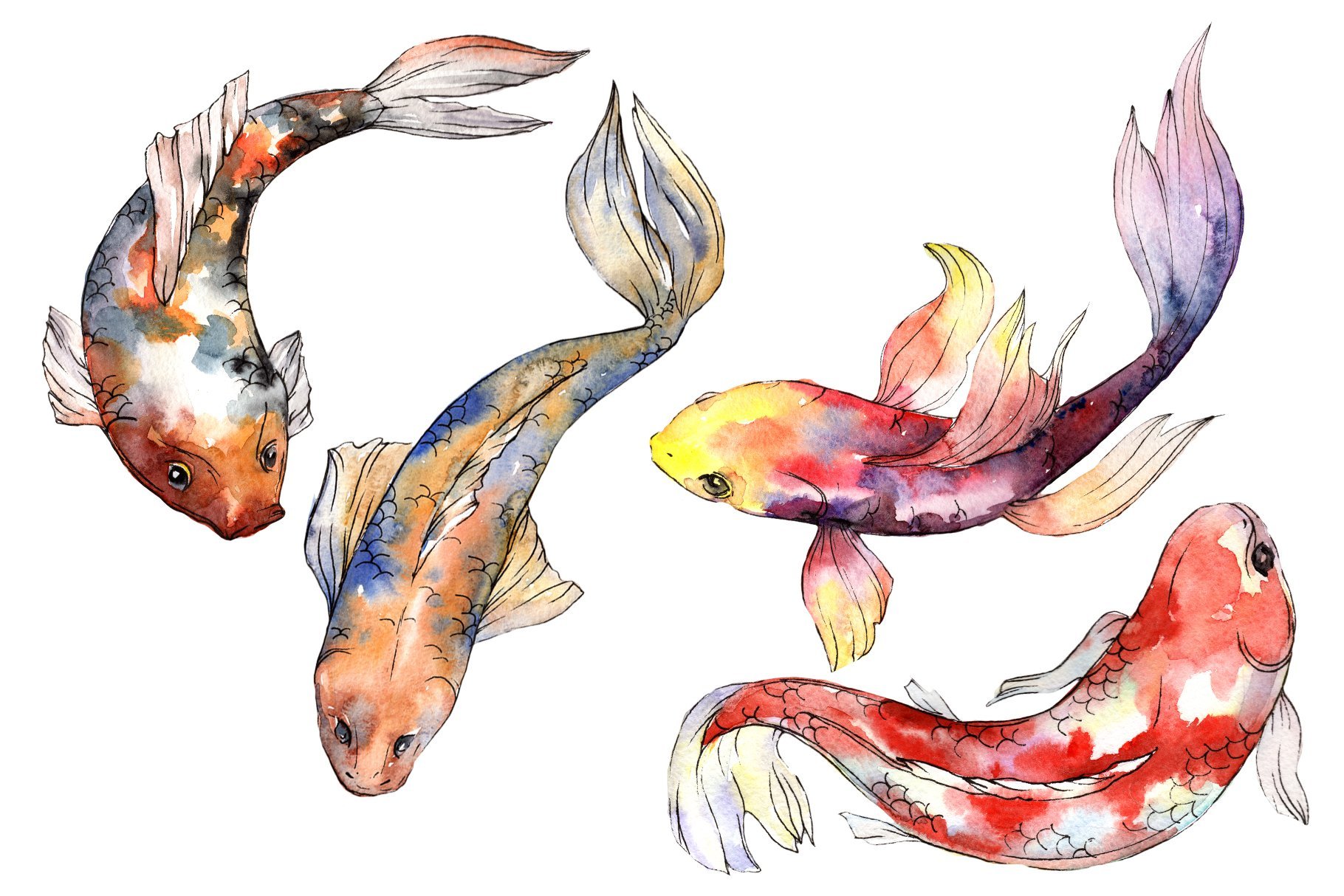 Японские рыбки акварель
