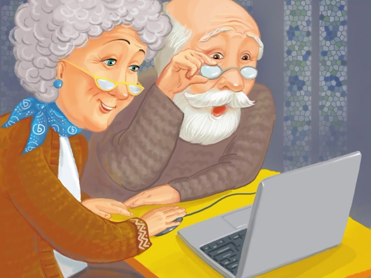 ![Дедушка и компьютер]()