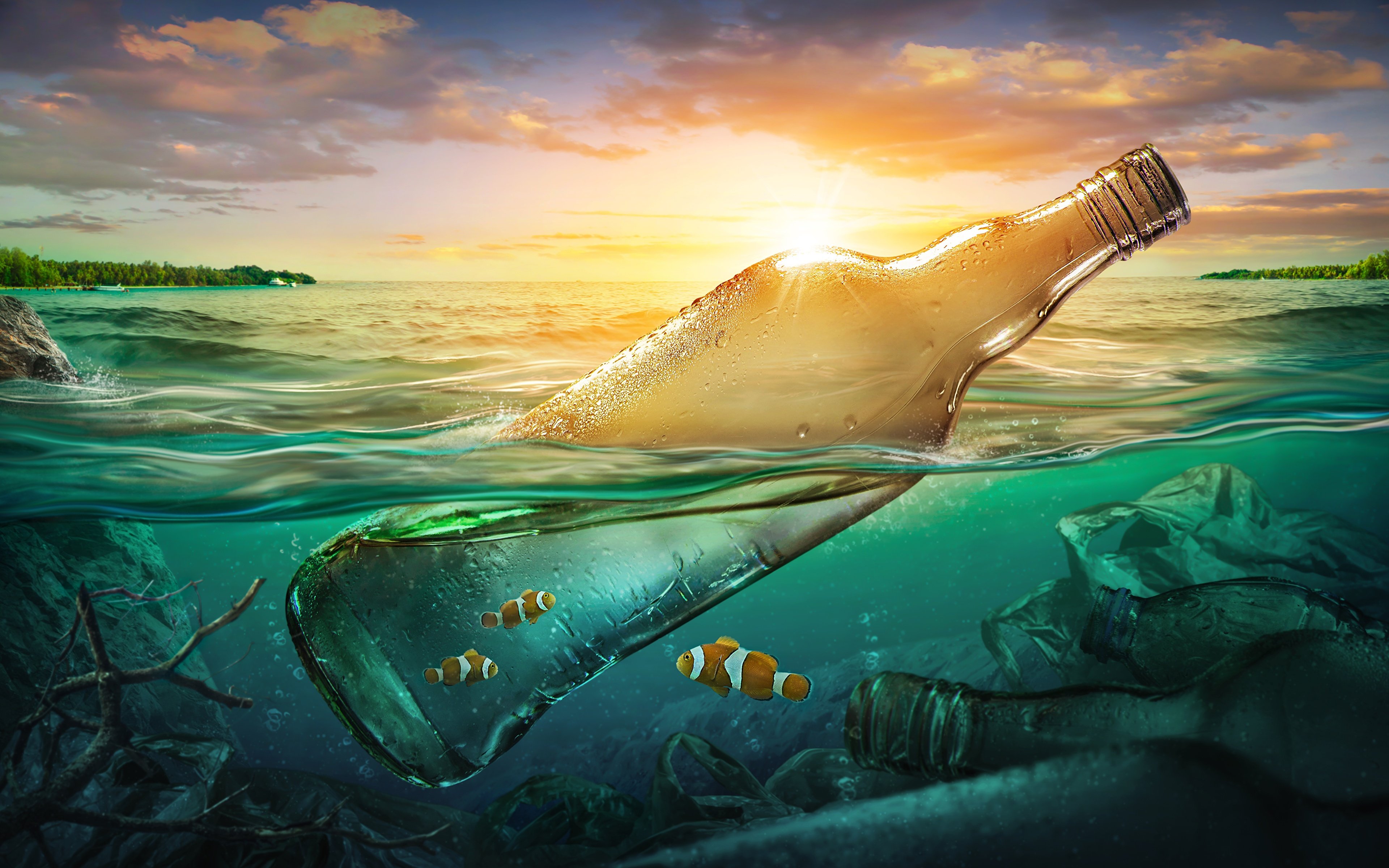 Пластиковая бутылка в море