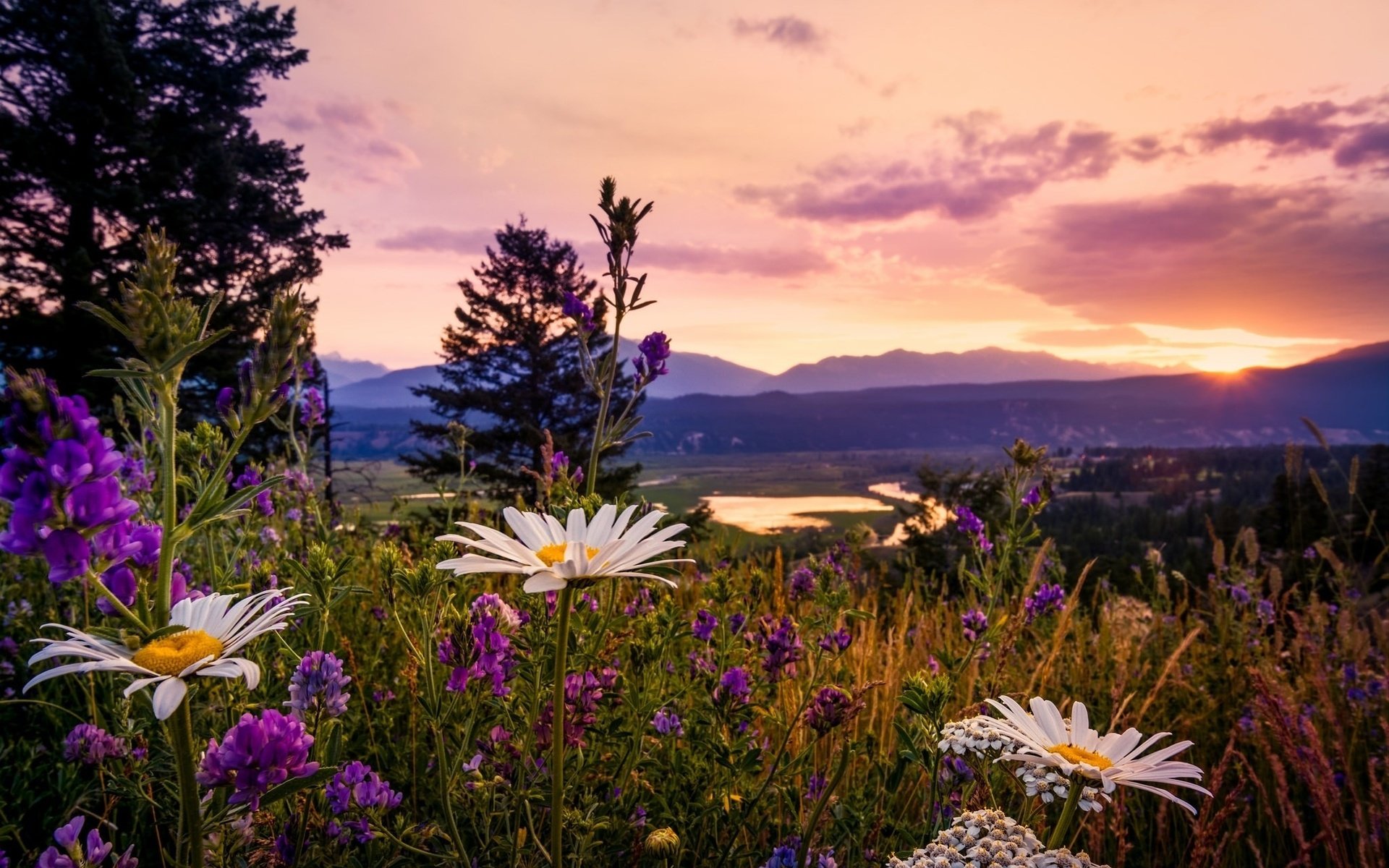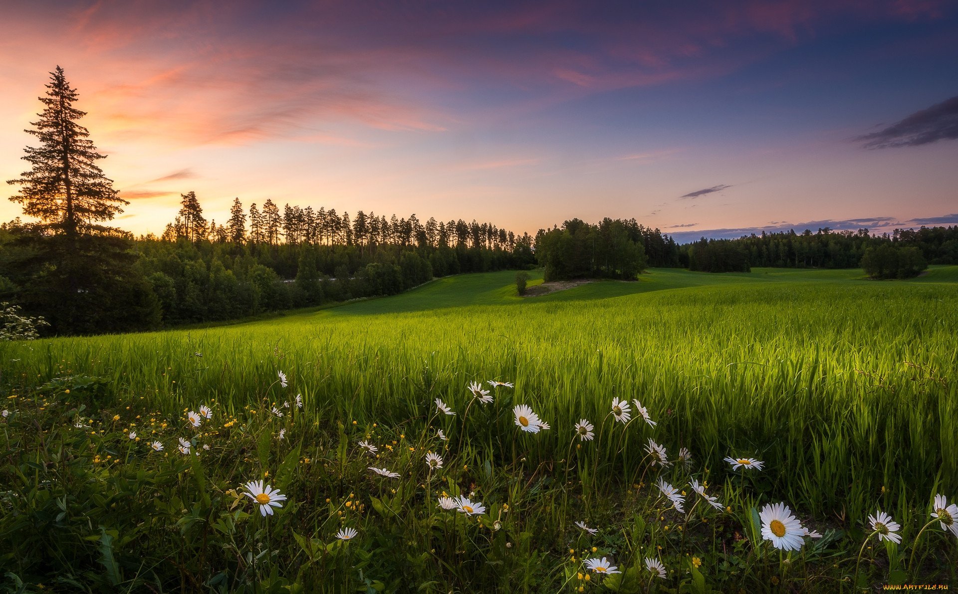 ![Красивая природа с ромашками]()