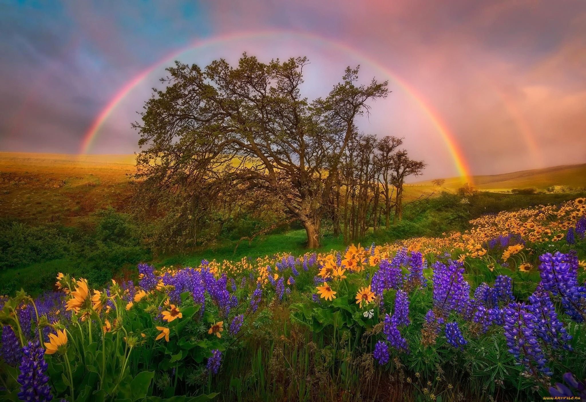 ![Пейзаж с радугой]()