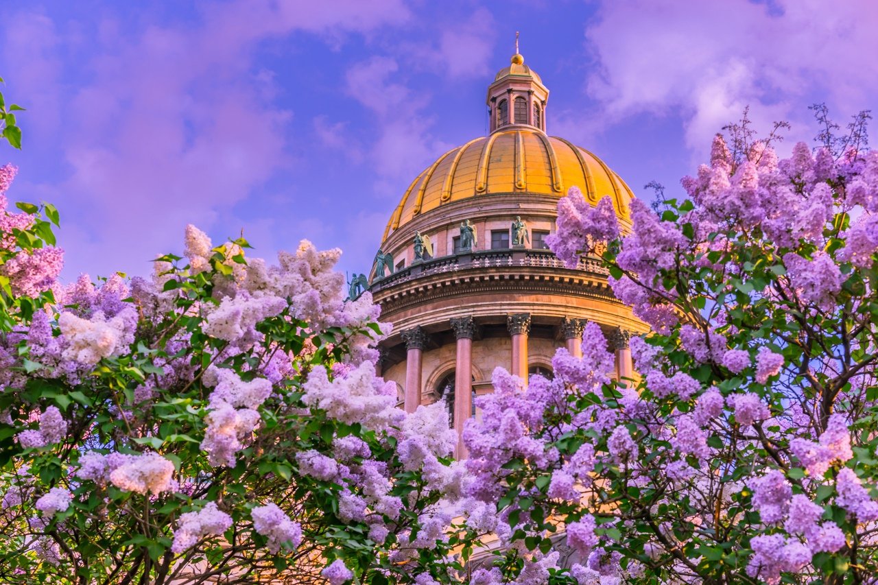 ![Исаакиевский собор сирень]()