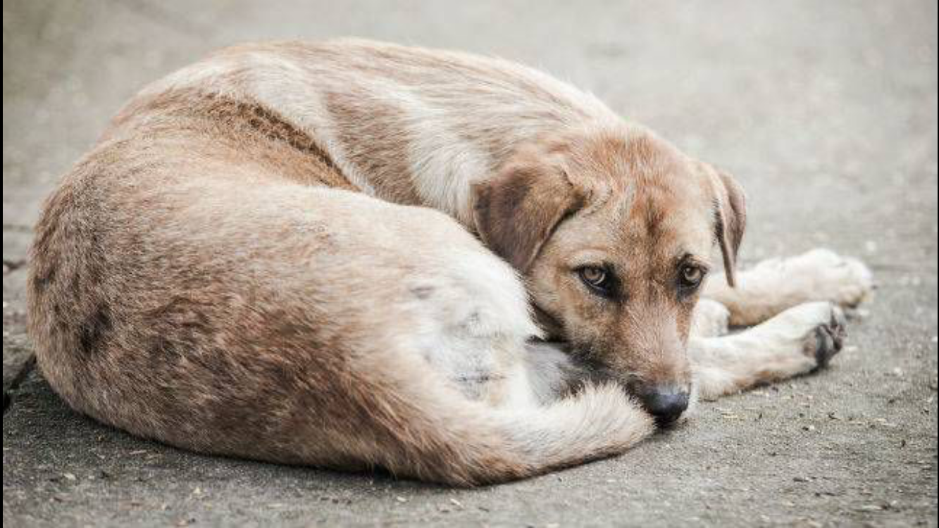 ![Грустная бездомная собака]()