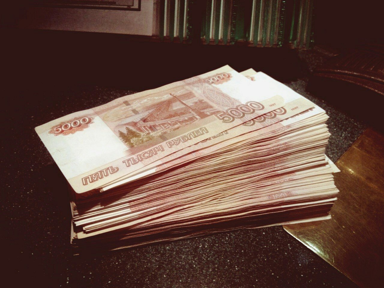 Пачки рублей на темном фоне