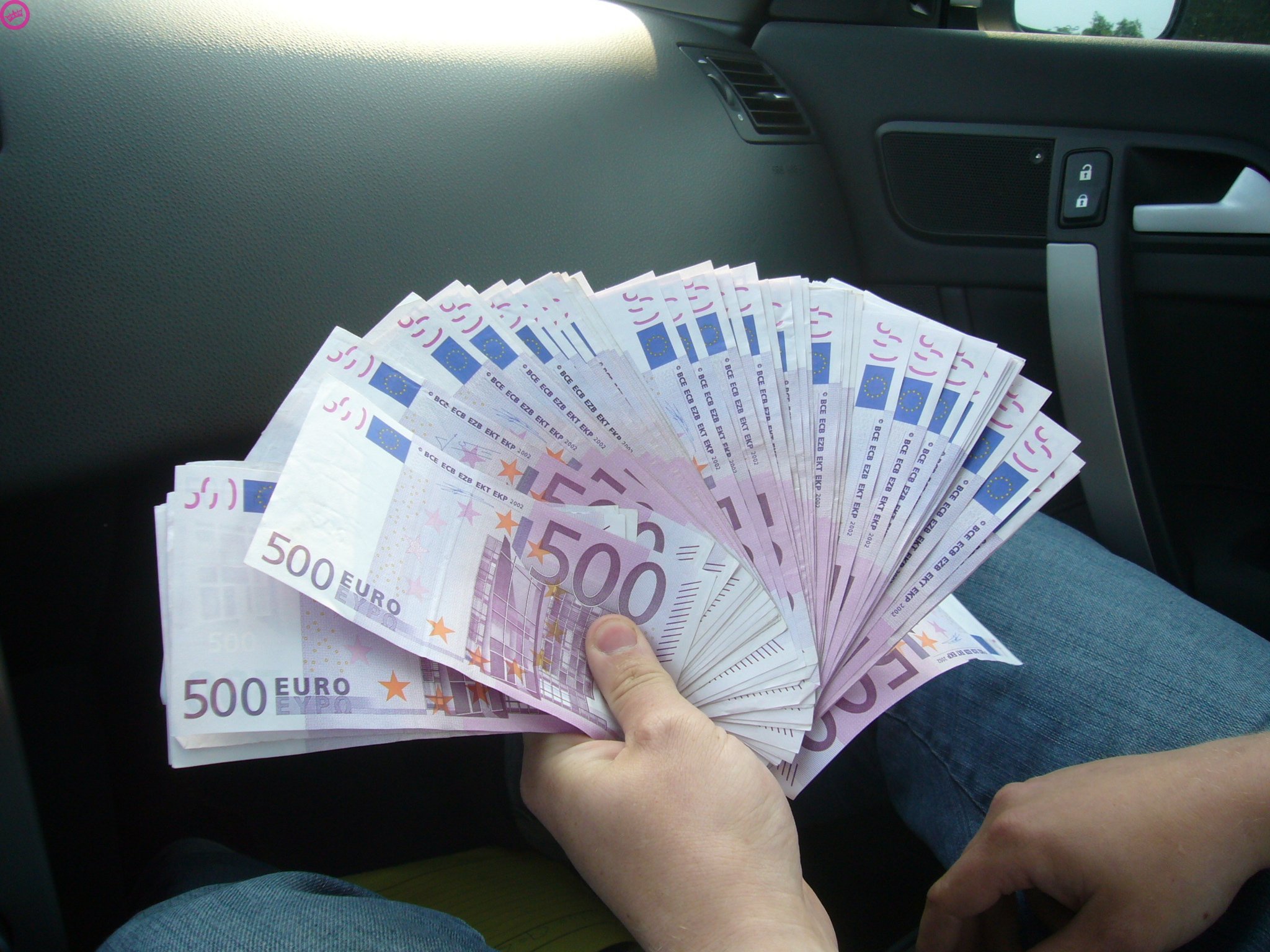 Деньги в руках в машине