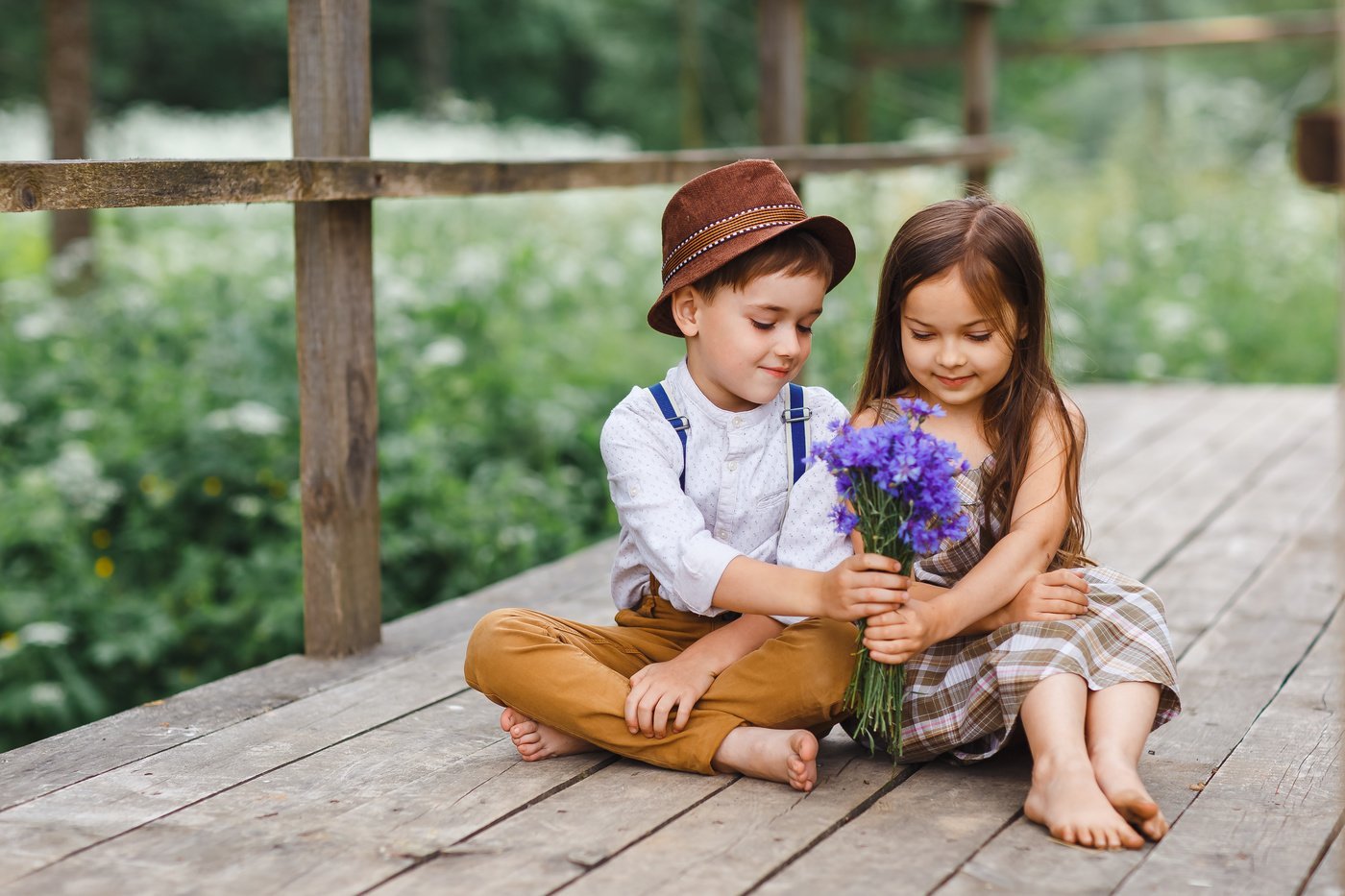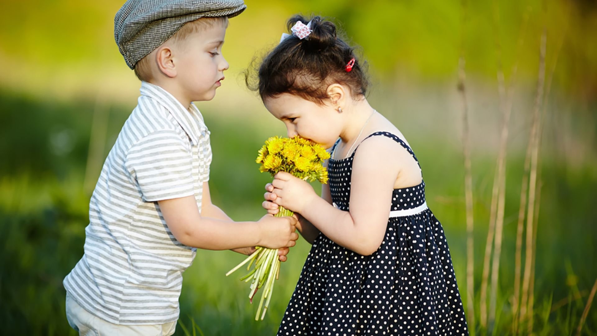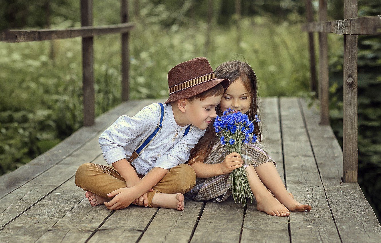 Мальчик и девочка с цветами
